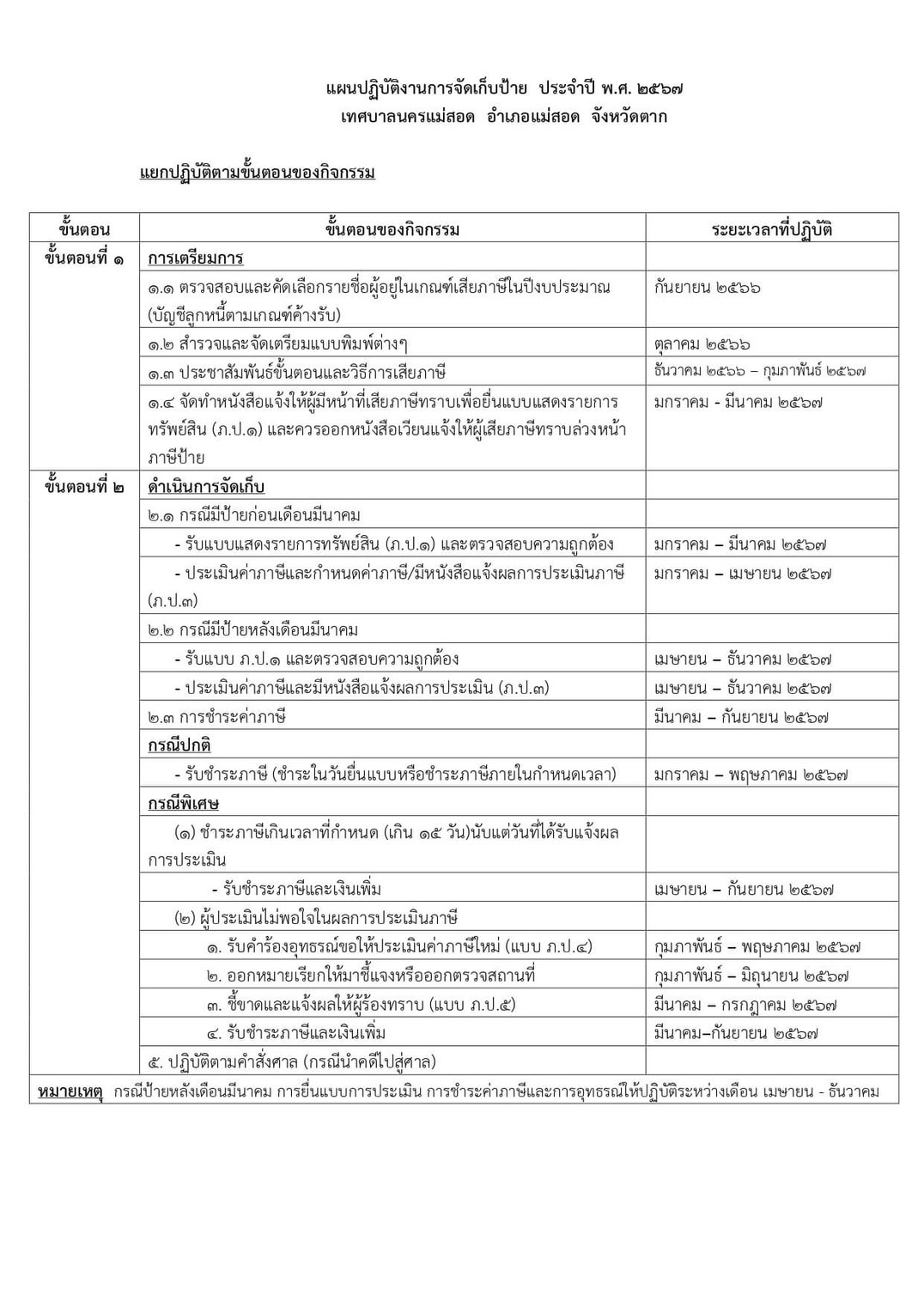 ประกาศเทศบาลนครแม่สอด เรื่อง แผนการจัดเก็บภาษีและพัฒนารายได้ ประจำปีงบประมาณ พ.ศ. 2567