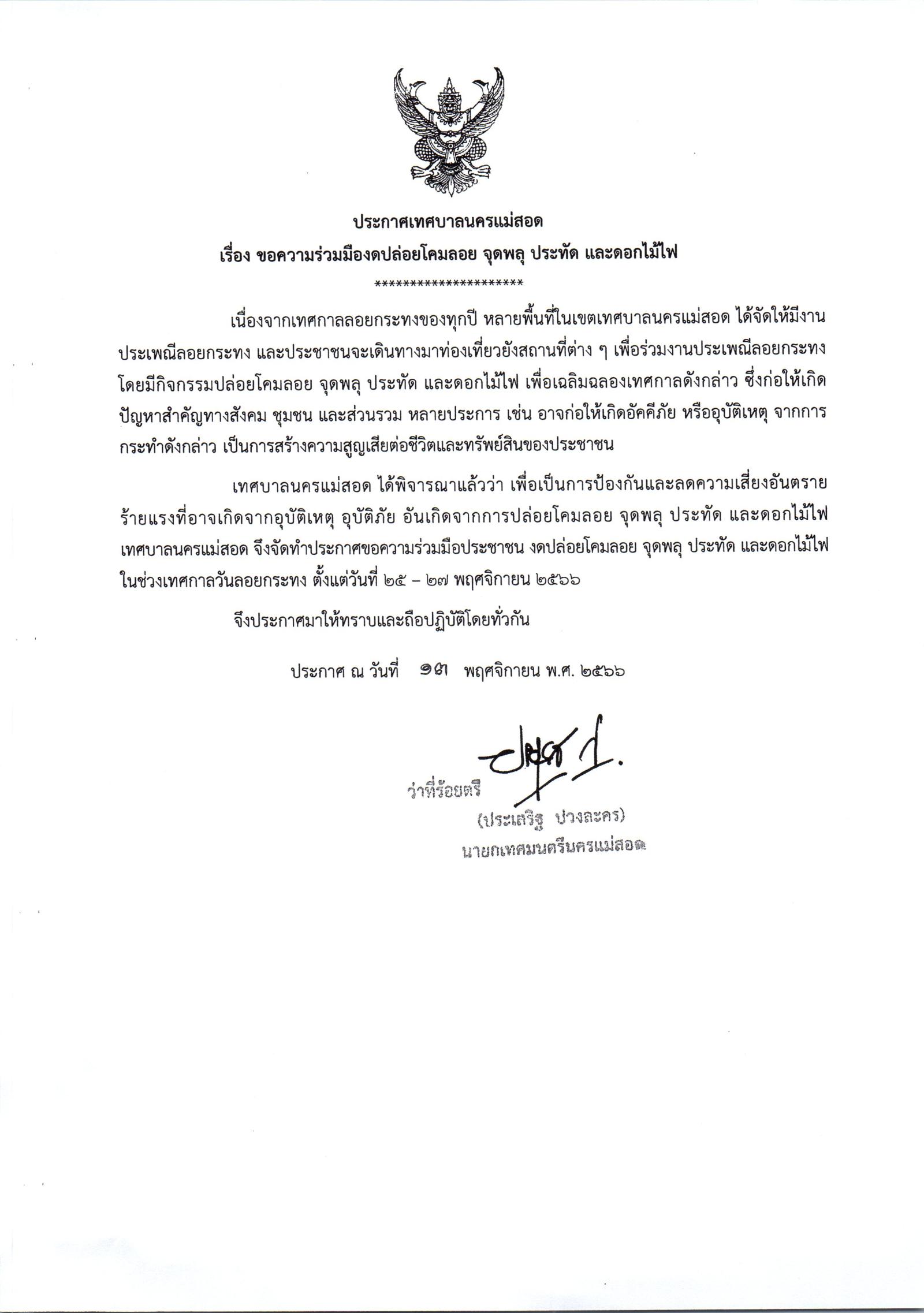 ประกาศ ขอความร่วมมืองดปล่อยโคมลอย