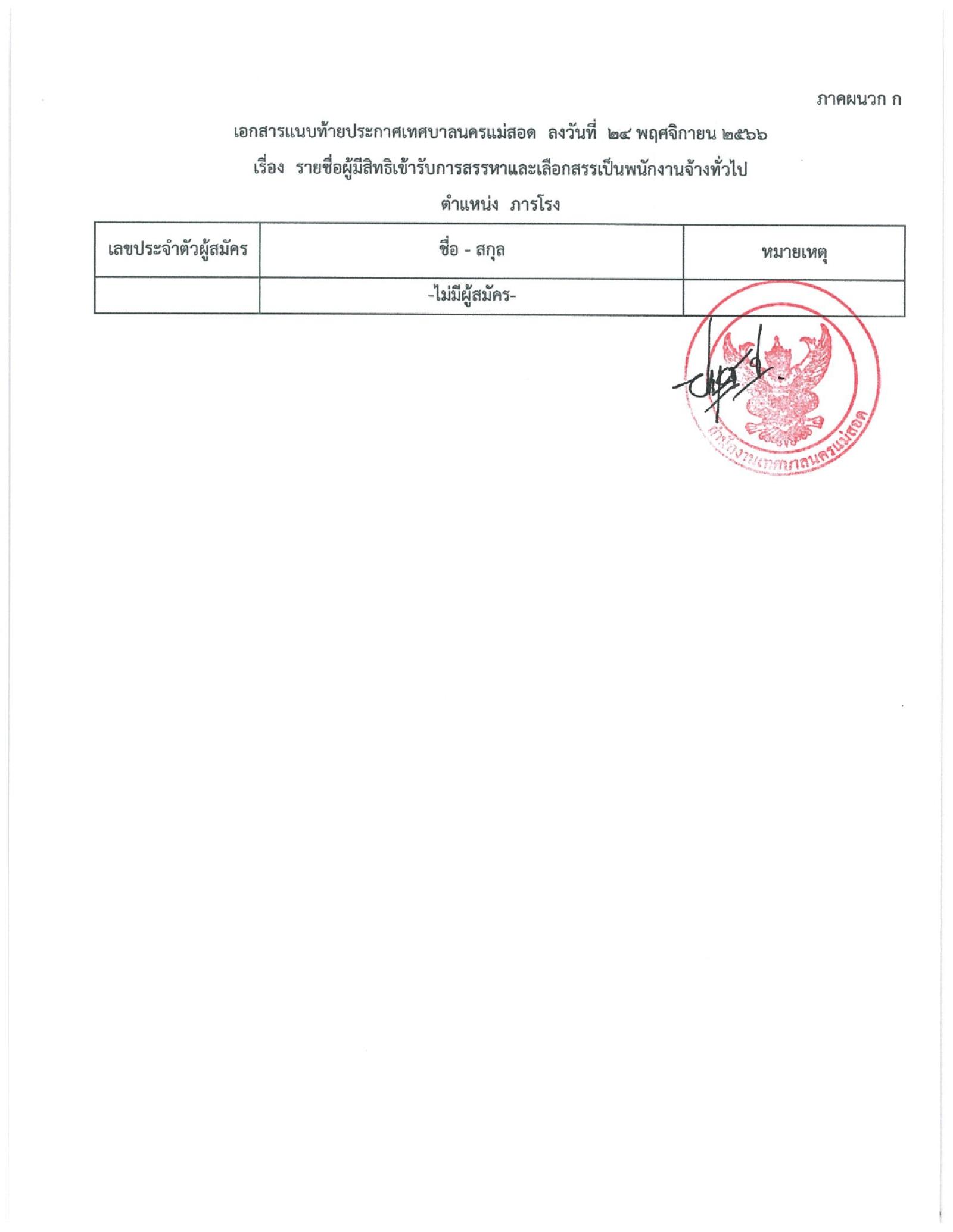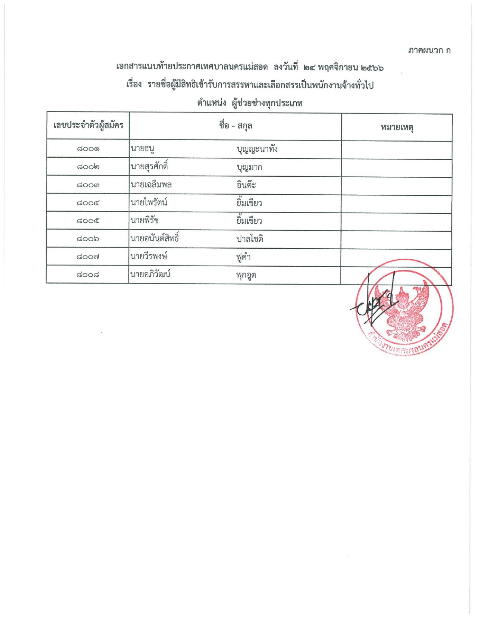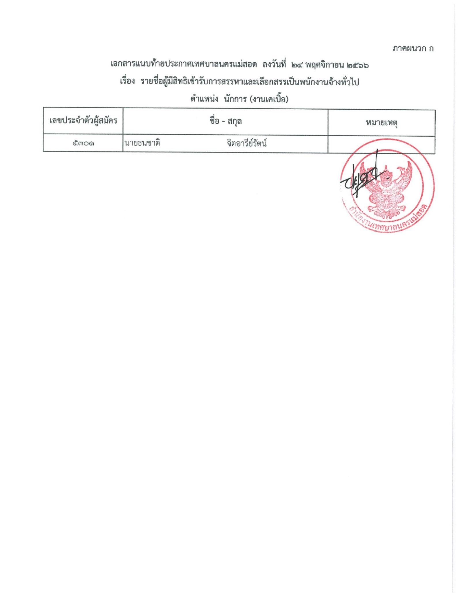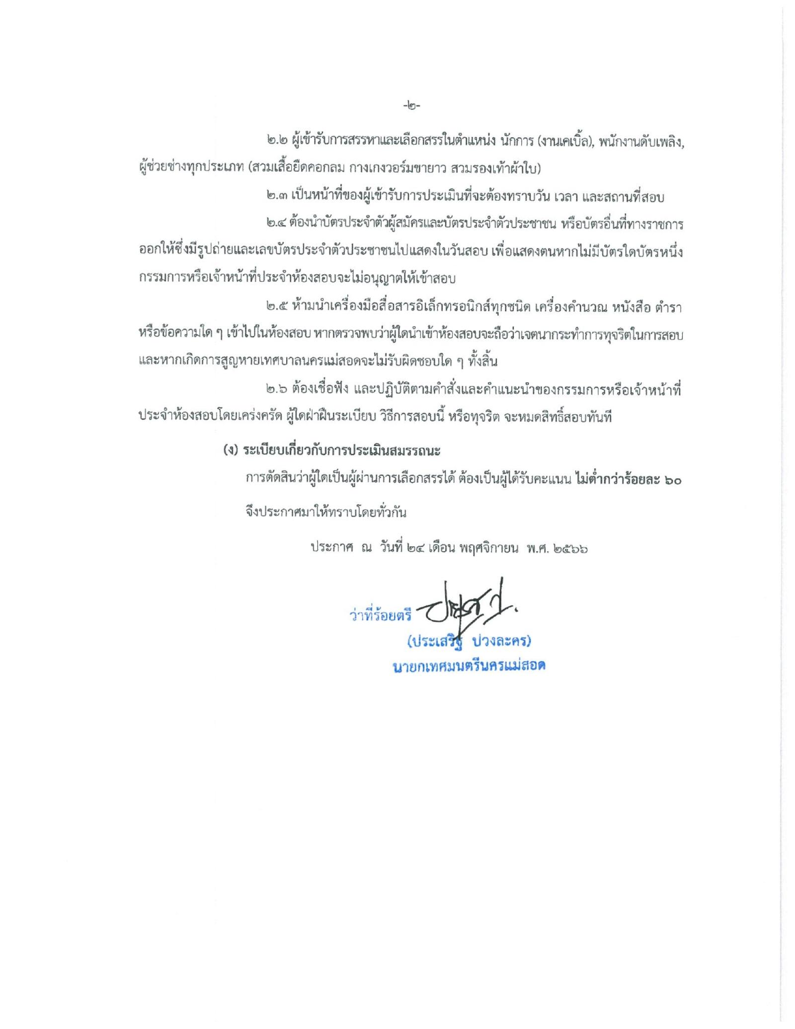ประกาศเทศบาลนครแม่สอด เรื่อง รายชื่อผู้มีสิทธิเข้ารับการสรรหาและเลือกสรรเป็นพนักงานจ้างทั่วไป กำหนดวัน เวลา สถานที่สอบ และระเบียบเกี่ยวกับการสอบ