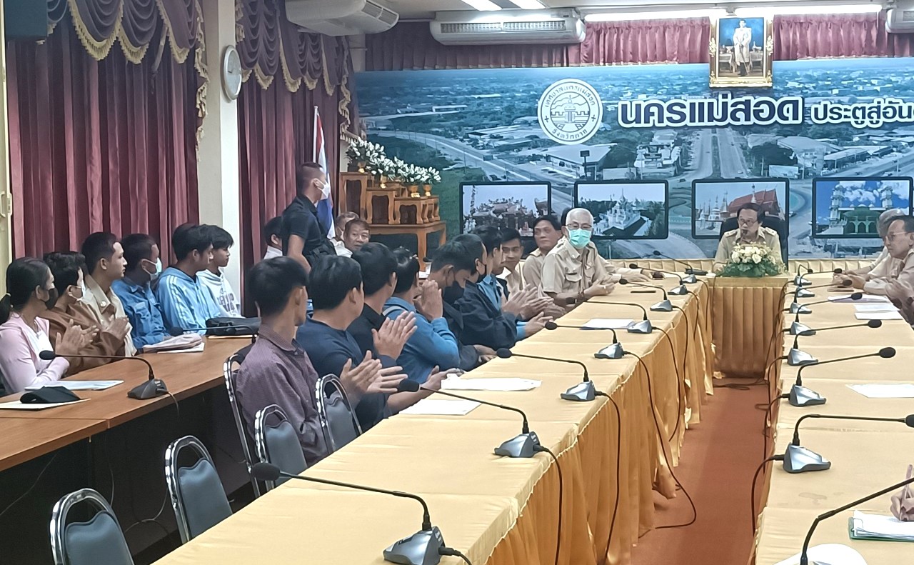 เมื่อวันที่ 18 ธันวาคม 2566 เวลา 9.00 น. ณ ห้องประชุมโกเมน ชั้น 3 สำนักงานเทศบาลนครแม่สอด กองการเจ้าหน้าที่ เทศบาลนครแม่สอด ได้รับเกียรติจาก ว่าที่ร้อยตรีประเสริฐ ปวงละคร นายกเทศมนตรีนครแม่สอด พร้อมคณะ รองนายกเทศมนตรี และสมาชิกสภาเทศบาลนครแม่สอด หัวหน้าสำนักปลัด พร้อมหัวหน้าฝ่าย สำนักปลัดเทศบาล ร่วมพบพนักงานจ้างทั่วไป เทศบาลนครแม่สอด รายใหม่ จำนวน 42 ราย