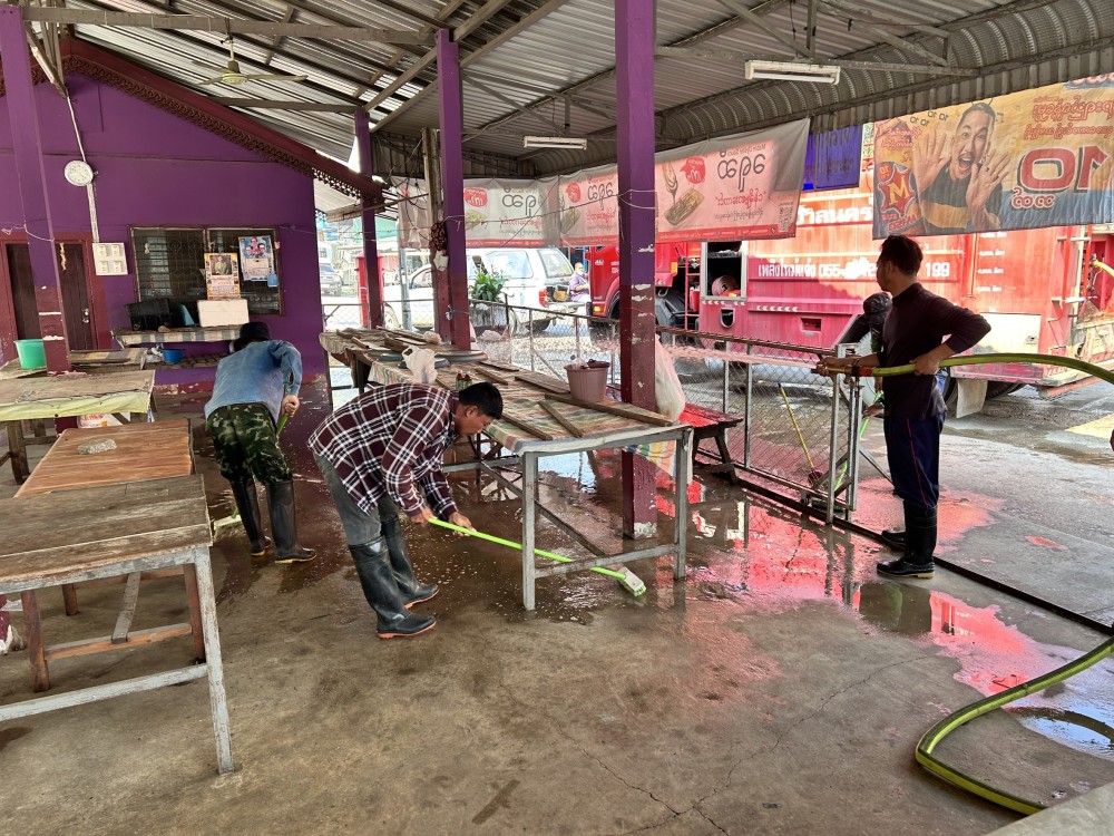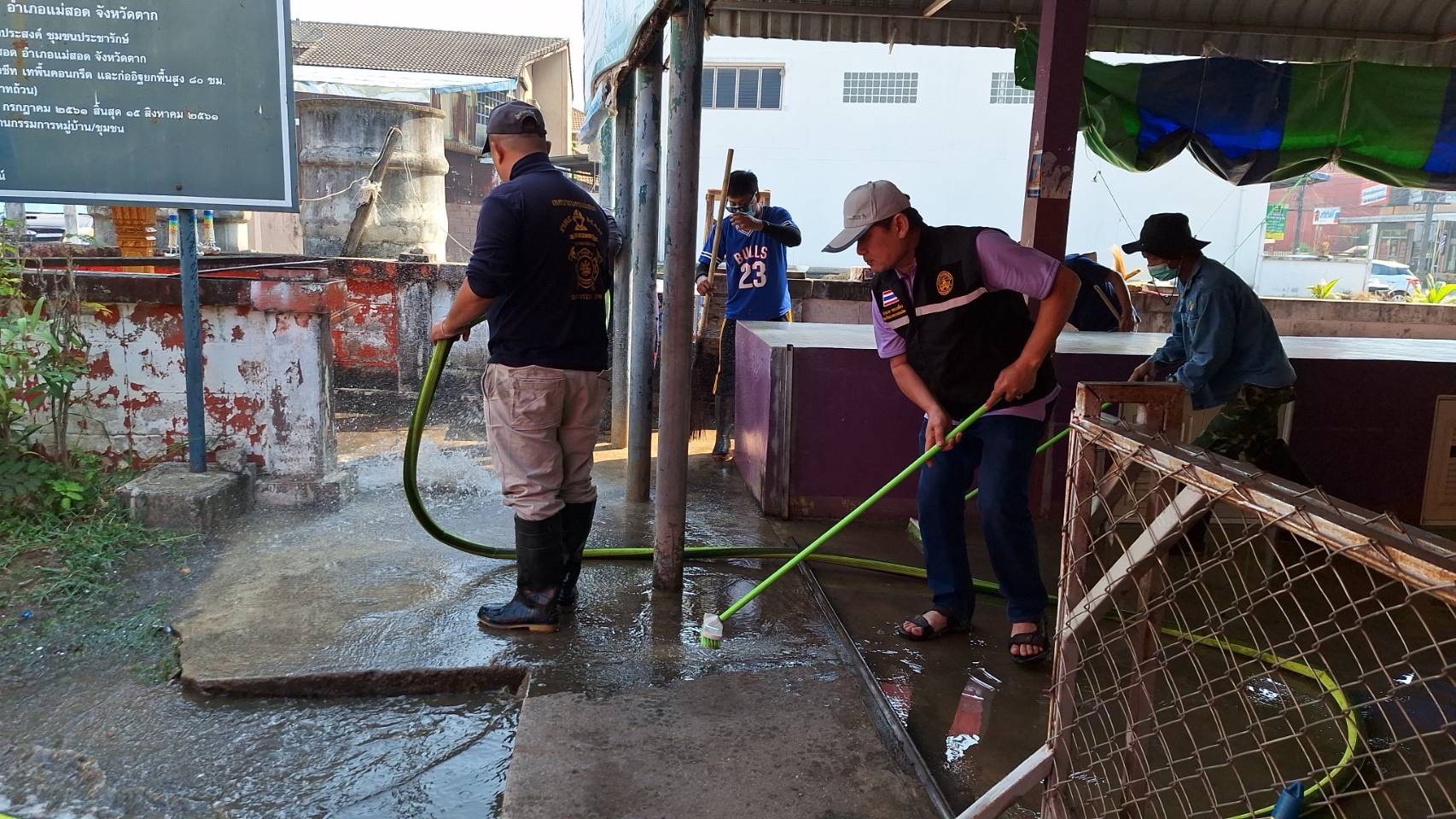 ว่าที่ร้อยตรี ประเสริฐ ปวงละคร นายกเทศมนตรีนครแม่สอด มอบหมายให้ นายสมเกียรติ สุริยา ที่ปรึกษานายกเทศมนตรีนครแม่สอด พร้อมด้วยสมาชิกสภาเทศบาล นำเจ้าหน้าที่กองสาธารณสุขและสิ่งแวดล้อม และเจ้าหน้าที่งานป้องกันและบรรเทาสาธารณภัย ลงพื้นที่ดำเนินการฉีดล้างทำความสะอาดตลาดสดบ้านเหนือ ตลาดประชารักษ์ และตลาดสดนครแม่สอด เพื่อความสะอาดและความเป็นระเบียบเรียบร้อยของตลาด