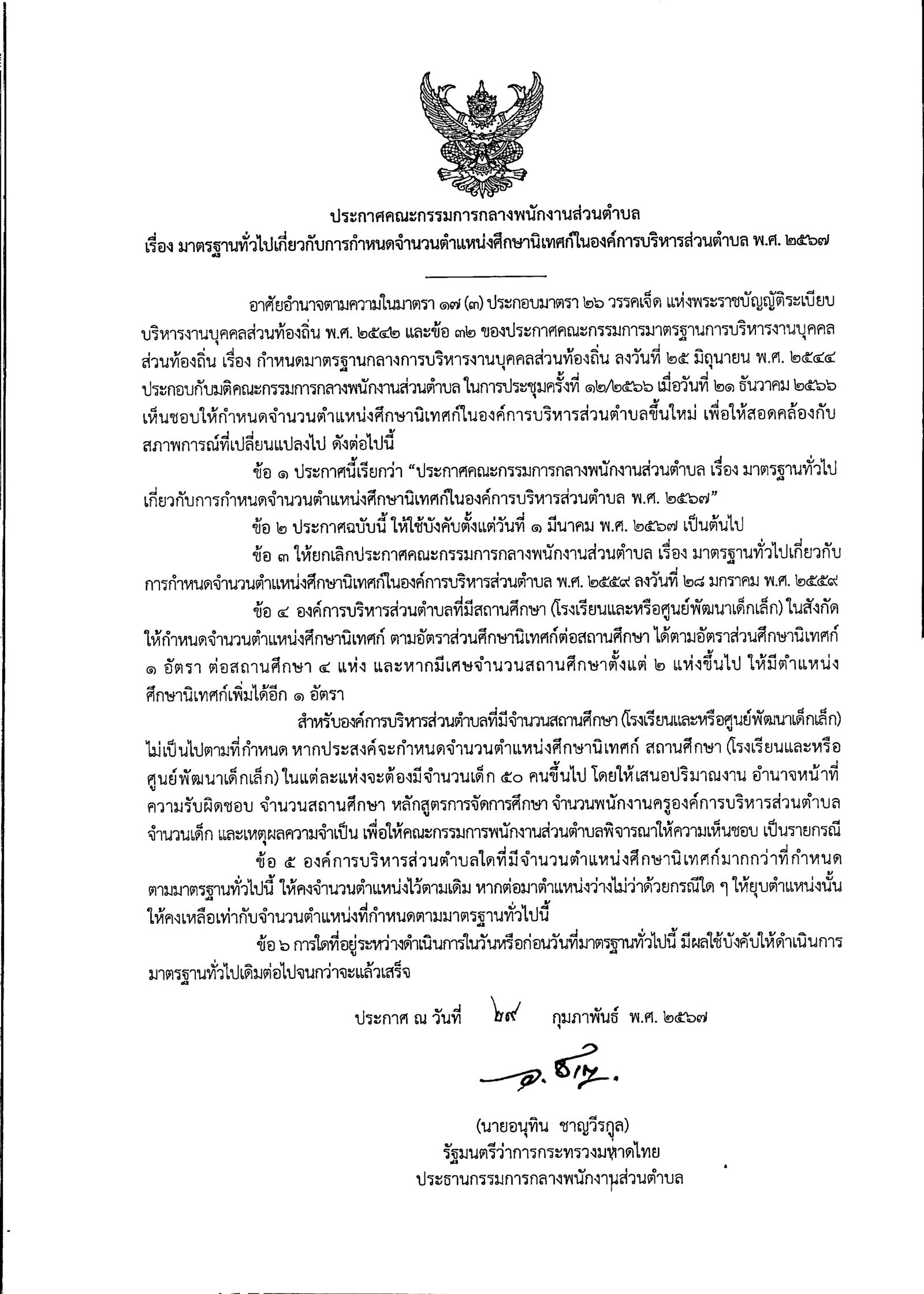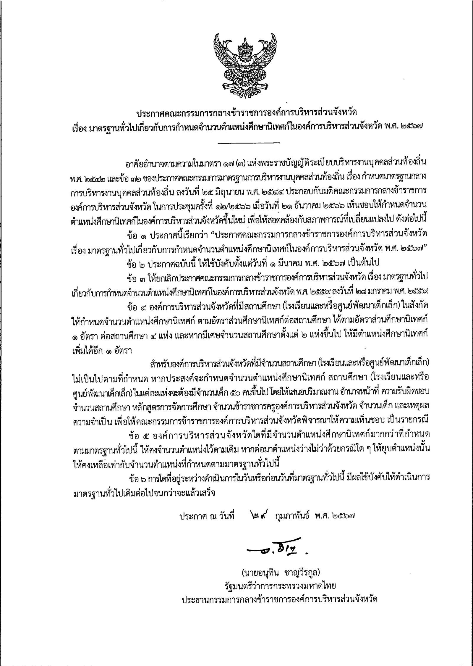 ประกาศ ก.จ. ก.ท. และ ก.อบต เรื่อง มาตรฐานทั่วไปเกี่ยวกับการกำหนดจำนวนตำแหน่งศึกษานิเทศก์ในองค์กรปกครองส่วนท้องถิ่น พ.ศ. 2567.pdf