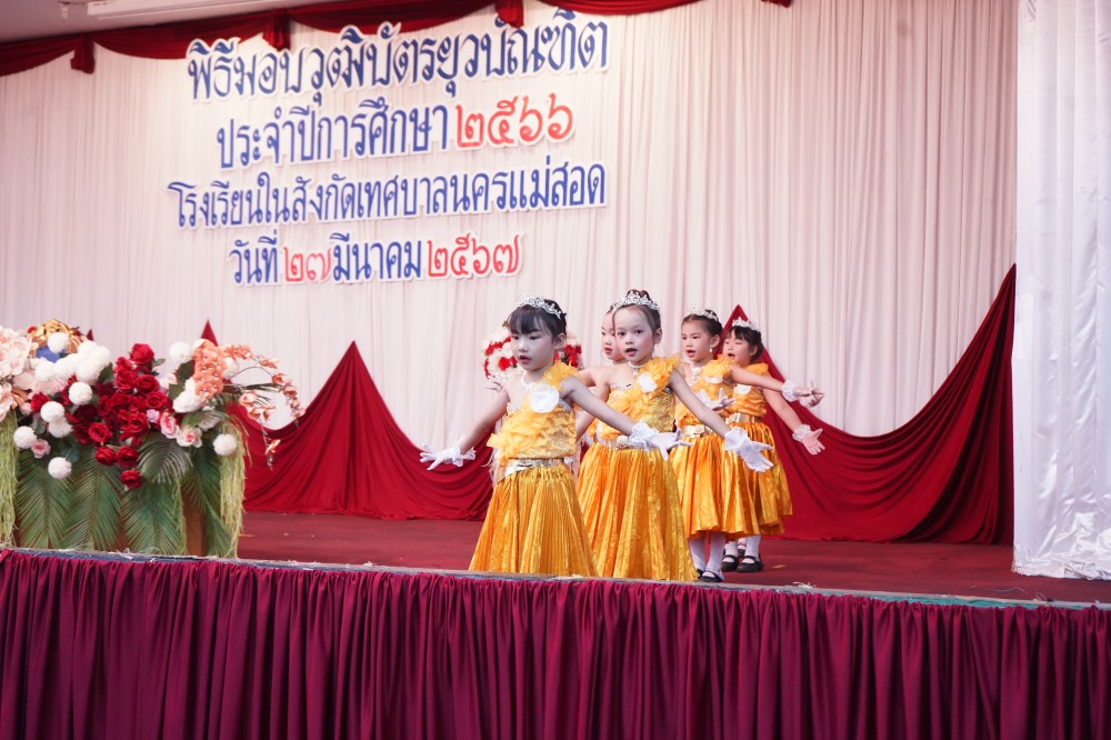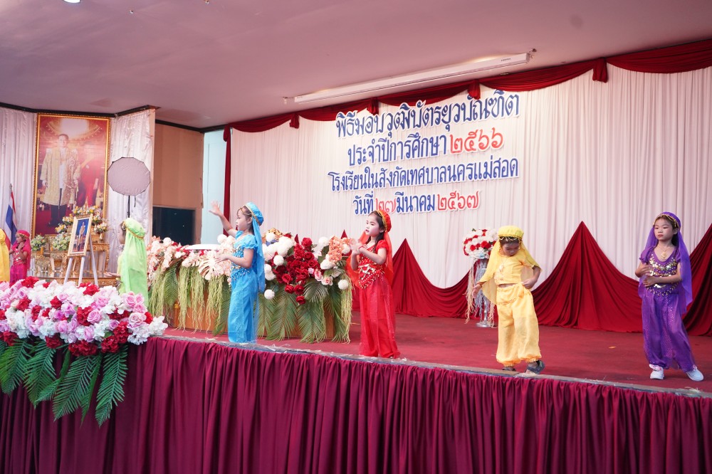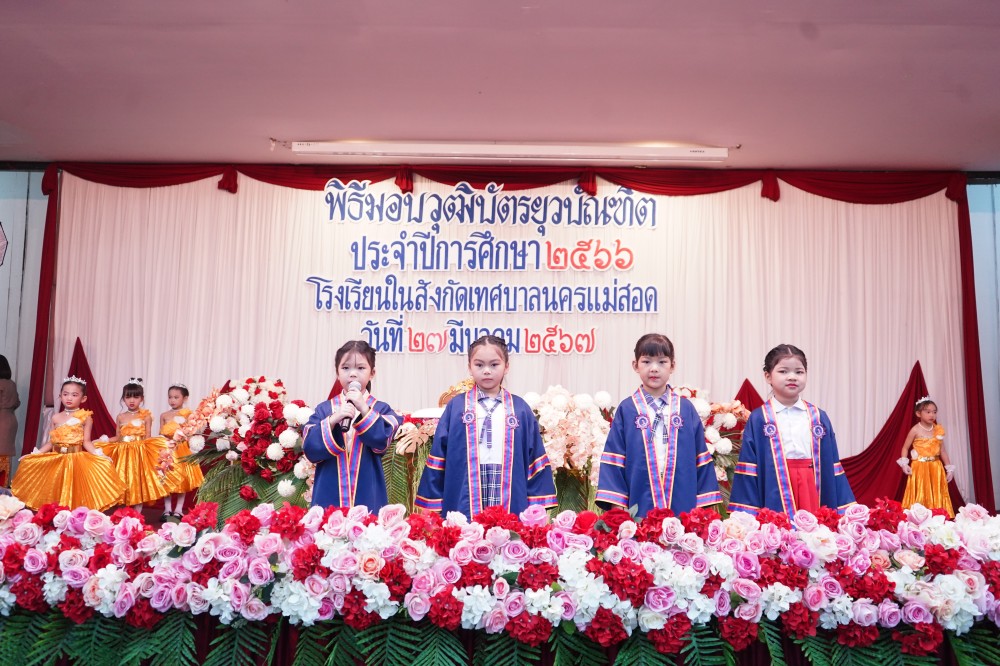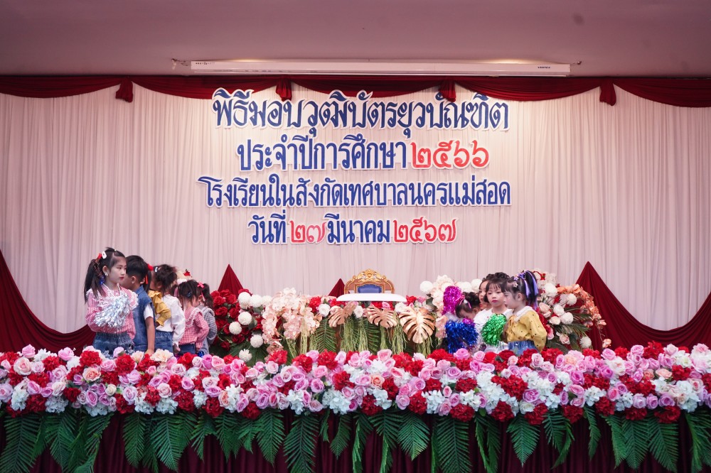 วันที่ 27 มีนาคม 2567 เวลา 09.00 น. ณ ศูนย์กลางแสดงสินค้าและศูนย์ประชุมเพื่อส่งเสริมการท่องเที่ยว เทศบาลนครแม่สอดจัดกิจกรรมพิธีมอบวุฒิบัตรยุวบัณทิต ประจำปีการศึกษา 2566 หลักสูตรการศึกษาระดับปฐมวัยจากโรงเรียนในสังกัดเทศบาลนครแม่สอด ประจำปีการศึกษา 2566 โดยได้รับเกียรติจากว่าที่ร้อยตรีประเสริฐ ปวงละคร นายกเทศมนตรีนครแม่สอด พร้อมด้วยคณะผู้บริหาร สมาชิกสภาเทศบาลนครแม่สอด ให้เกียรติเป็นประธานในพิธีเปิด และมีนายศุภกร เบญจกัญญา ปลัดเทศบาลนครแม่สอด กล่าวรายงานถึงวัตถุประสงค์ในการจัดงานในครั้งนี้