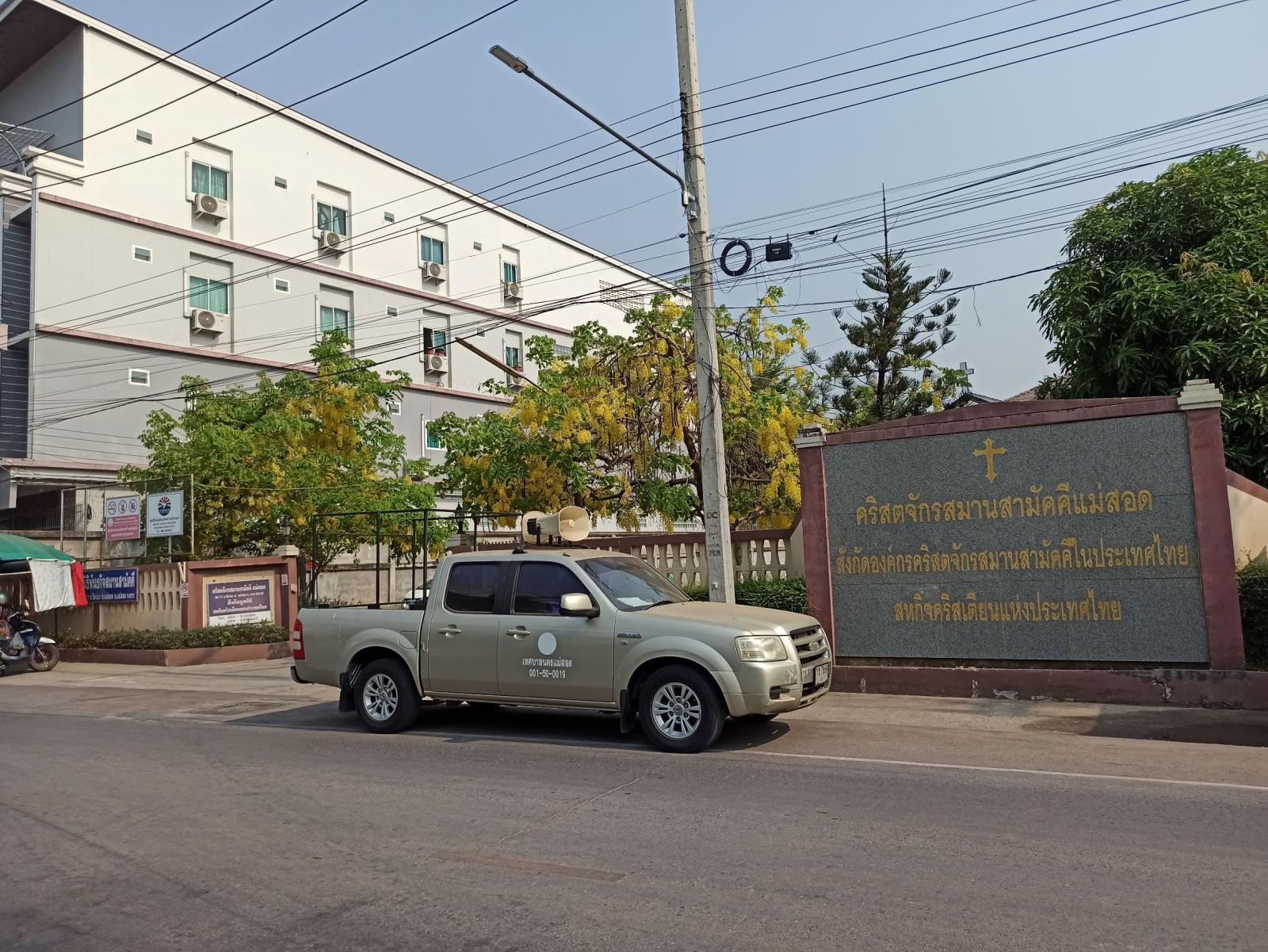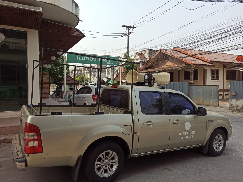 เจ้าหน้าที่ฝ่ายวิเทศสัมพันธ์กองยุทธศาสตร์และงบประมาณ ดำเนินการประชาสัมพันธ์เชิญชวนร่วมงานสงกรานต์ “เย็นทั่วหล้ามหาสงกรานต์เทศบาลนครแม่สอด”