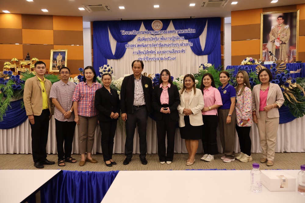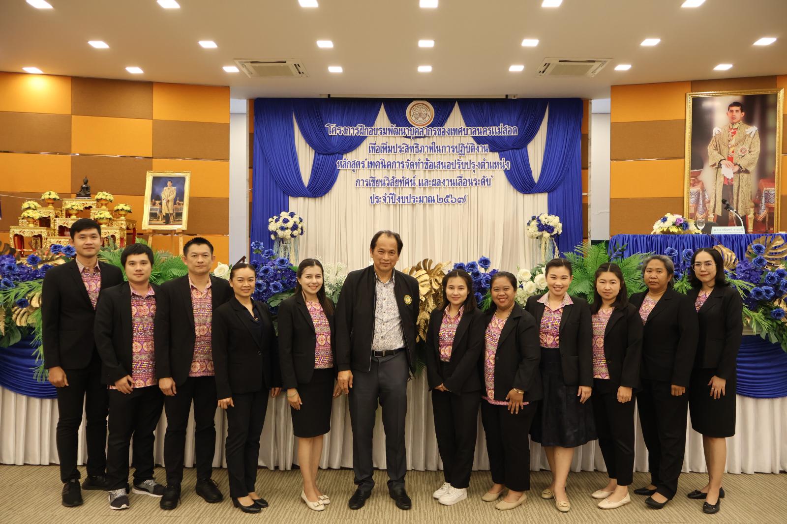 เมื่อวันที่ 20 เมษายน 2567 เวลา 9.00 น.ณ ห้องประชุมเพชรน้ำหนึ่ง (ชั้น 6) อาคารศูนย์ส่งเสริมอาชีพชุมชนเทศบาลนครแม่สอด กองการเจ้าหน้าที่ ได้รับเกียรติ จาก ว่าที่ร้อยตรีประเสริฐ ปวงละคร นายกเทศมนตรีนครแม่สอด เป็นประธานเปิดการอบรมโครงการฝึกอบรมพัฒนาบุคลากรของเทศบาลนครแม่สอด หลักสูตร เทคนิคการจัดทำข้อเสนอปรับปรุงตำแหน่ง การเขียนวิสัยทัศน์ และงานเลื่อนระดับ โดยได้รับเกียรติ จาก พ.จ.อ. ชนินทร์ ราชมณี ผู้ทรงคุณวุฒิกรมส่งเสริมการปกครองส่วนท้องถิ่น มาให้คำบรรยายในหัวข้อดังกล่าวข้างต้น