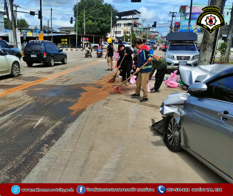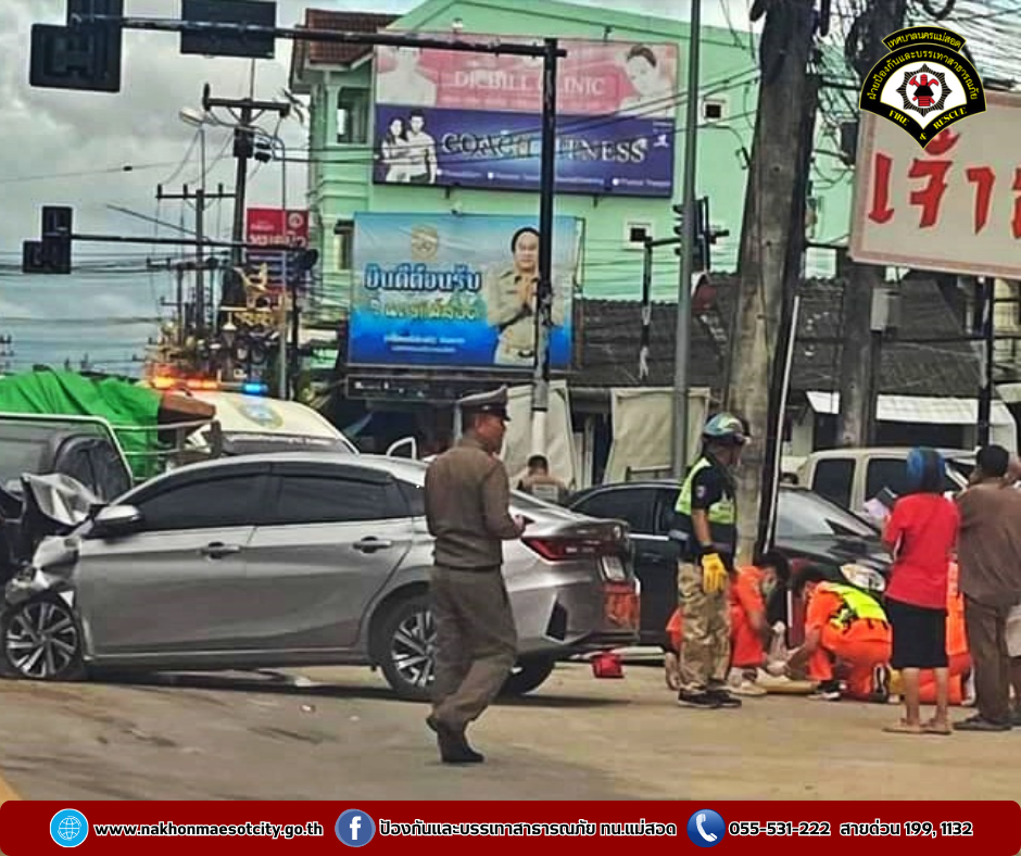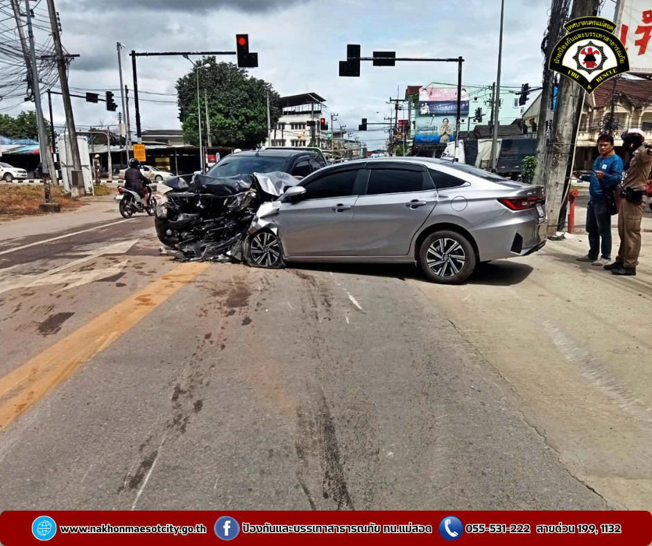 วันที่ 23 มิถุนายน 2567 เวลาประมาณ 09.40 น. เกิดอุบัติเหตุรถยนต์ (เก๋ง) เฉี่ยวชนรถจักรยานยนต์ และพุ่งชนรถยนต์กระบะ บริเวณแยกเจ้าสัว ตำบลแม่สอด อำเภอแม่สอด จังหวัดตาก ส่งผลให้มีผู้ได้รับบาดเจ็บหลายราย และเกิดน้ำมันรั่วไหลบนพื้นผิวถนน