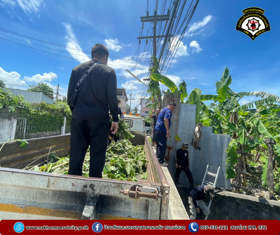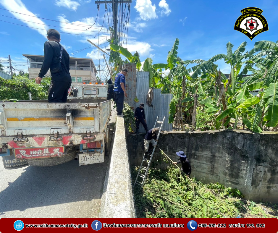 เมื่อวันศุกร์ที่ 28 มิถุนายน 2567 เวลา 13.30 น. ว่าที่ร้อยตรี ประเสริฐ ปวงละคร นายกเทศมนตรีนครแม่สอด มอบหมายให้ ดับเพลิงนครแม่สอด นำรถยนต์บรรทุก 6 ล้อ ออกดำเนินการเก็บกิ่งไม้ขึ้นมาจากคอลงแม่สอด บริเวณสะพานใกล้เคียงศูนย์ควบคุมโรคติดต่อนำโดยแมลงที่ 83 แม่สอด