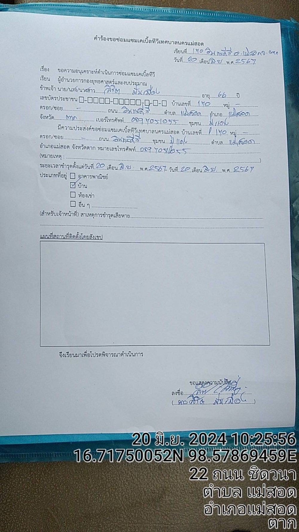 เมื่อวันที่ 10 กรกฎาคม 2567 ว่าที่พันตรี ดร.ไพฑูรย์ ปริญญาธรรมกุล ผู้อำนวยการกองยุทธศาสตร์และงบประมาณ มอบหมายให้ เจ้าหน้าที่ฝ่ายวิเทศสัมพันธ์ กองยุทธศาสตร์และงบประมาณ ลงพื้นที่ดำเนินการตามคำร้องขอซ่อมแซมเคเบิ้ลทีวีเพื่อการศึกษาเทศบาลนครแม่สอด และให้บริการตามคำขอใช้ข้อมูลจากกล้องวงจรปิด ดังนี้