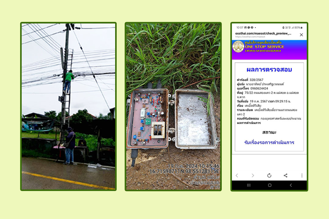เมื่อวันศุกร์ ที่ 19 กรกฎาคม 2567 ว่าที่พันตรี ดร.ไพฑูรย์ ปริญญาธรรมกุล ผู้อำนวยการกองยุทธศาสตร์และงบประมาณ มอบหมายให้ เจ้าหน้าที่ฝ่ายวิเทศสัมพันธ์ กองยุทธศาสตร์และงบประมาณ ลงพื้นที่ดำเนินการตามคำร้องขอซ่อมแซมเคเบิ้ลทีวี เพื่อการศึกษาเทศบาลนครแม่สอด ชุมชนสองแคว 2 เพื่อให้ประชาชนชุมชนดังกล่าวสามารถรับบริการเคเบิ้ลทีวีเพื่อการศึกษาเทศบาลนครแม่สอดได้ตามปกติ