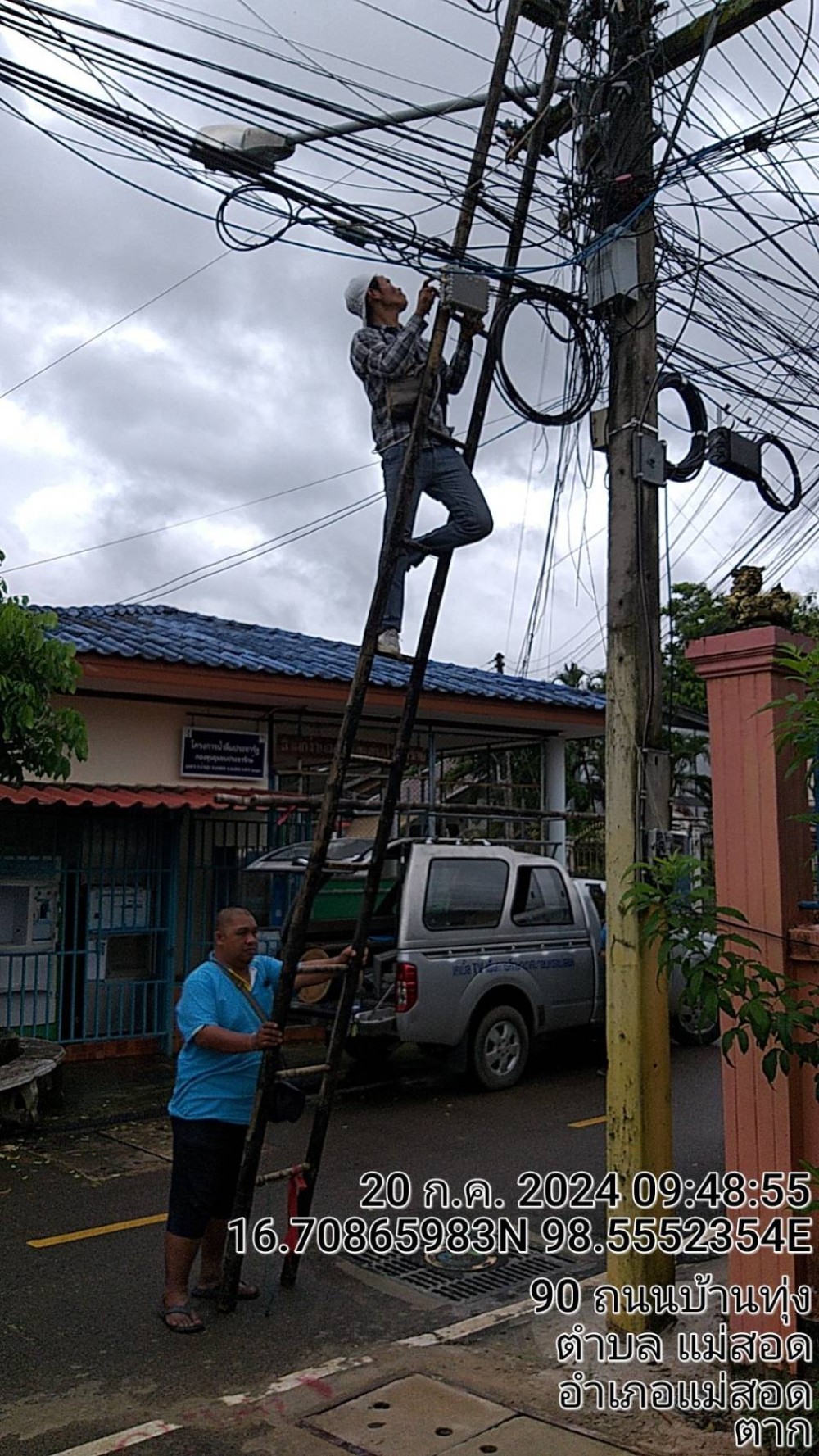 ระหว่างวันที่ 20-23 กรกฎาคม 2567 ว่าที่พันตรี ดร.ไพฑูรย์ ปริญญาธรรมกุล ผู้อำนวยการกองยุทธศาสตร์และงบประมาณ มอบหมายให้ เจ้าหน้าที่ฝ่ายวิเทศสัมพันธ์ กองยุทธศาสตร์และงบประมาณ ลงพื้นที่ดำเนินการตามคำร้องขอซ่อมแซมเคเบิ้ลทีวี เพื่อการศึกษาเทศบาลนครแม่สอด เพื่อให้ประชาชนชุมชนดังกล่าวสามารถรับบริการเคเบิ้ลทีวีได้ตามปกติ และให้บริการตามคำขอใช้ข้อมูลจากกล้องวงจรปิด ดังนี้
