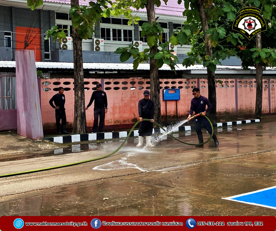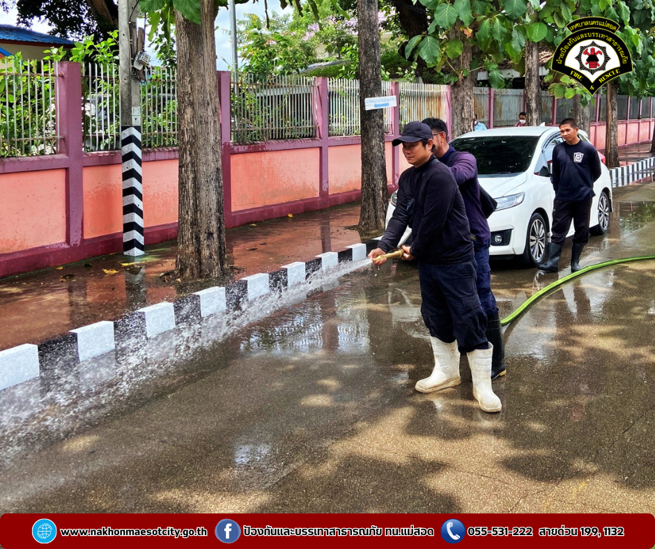 วันพุธที่ 10 กรกฎาคม 2567 เวลา 13.30 น. ว่าที่ร้อยตรี ประเสริฐ ปวงละคร นายกเทศมนตรีนครแม่สอด มอบหมายให้เจ้าหน้าที่ดับเพลิงนครแม่สอด นำรถยนต์บรรทุกน้ำดับเพลิง จำนวน 1 คัน ออกดำเนินการฉีดล้างทำความสะอาด ถนนทางเข้าและลานอเนกประสงค์ของเรือนจำอำเภอแม่สอด จังหวัดตาก ตามคำร้องขอความอนุเคราะห์ฯ เพื่อขจัดเศษ หิน ดิน ทราย รวมถึงสิ่งปนเปื้อนบนพื้นผิวถนน