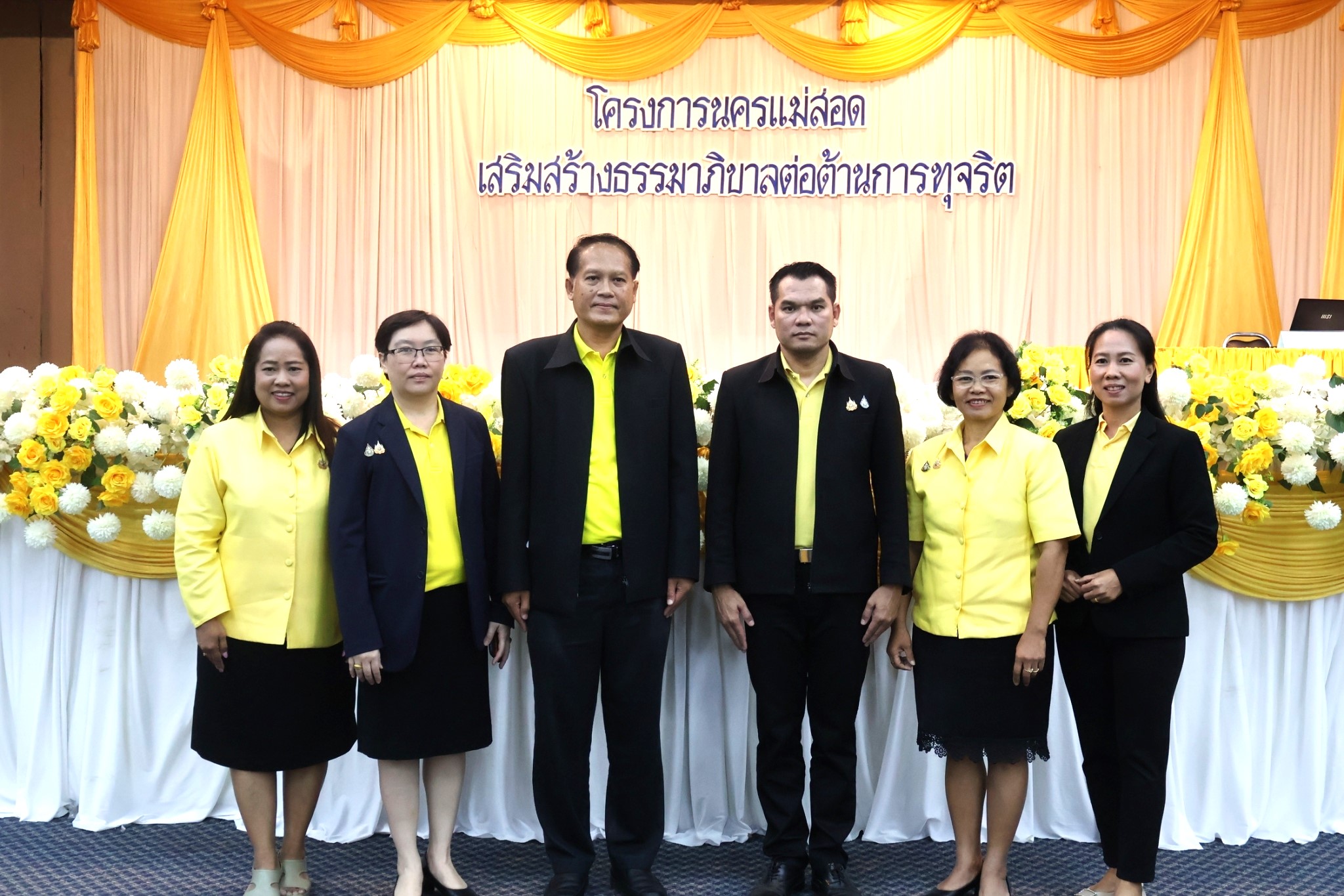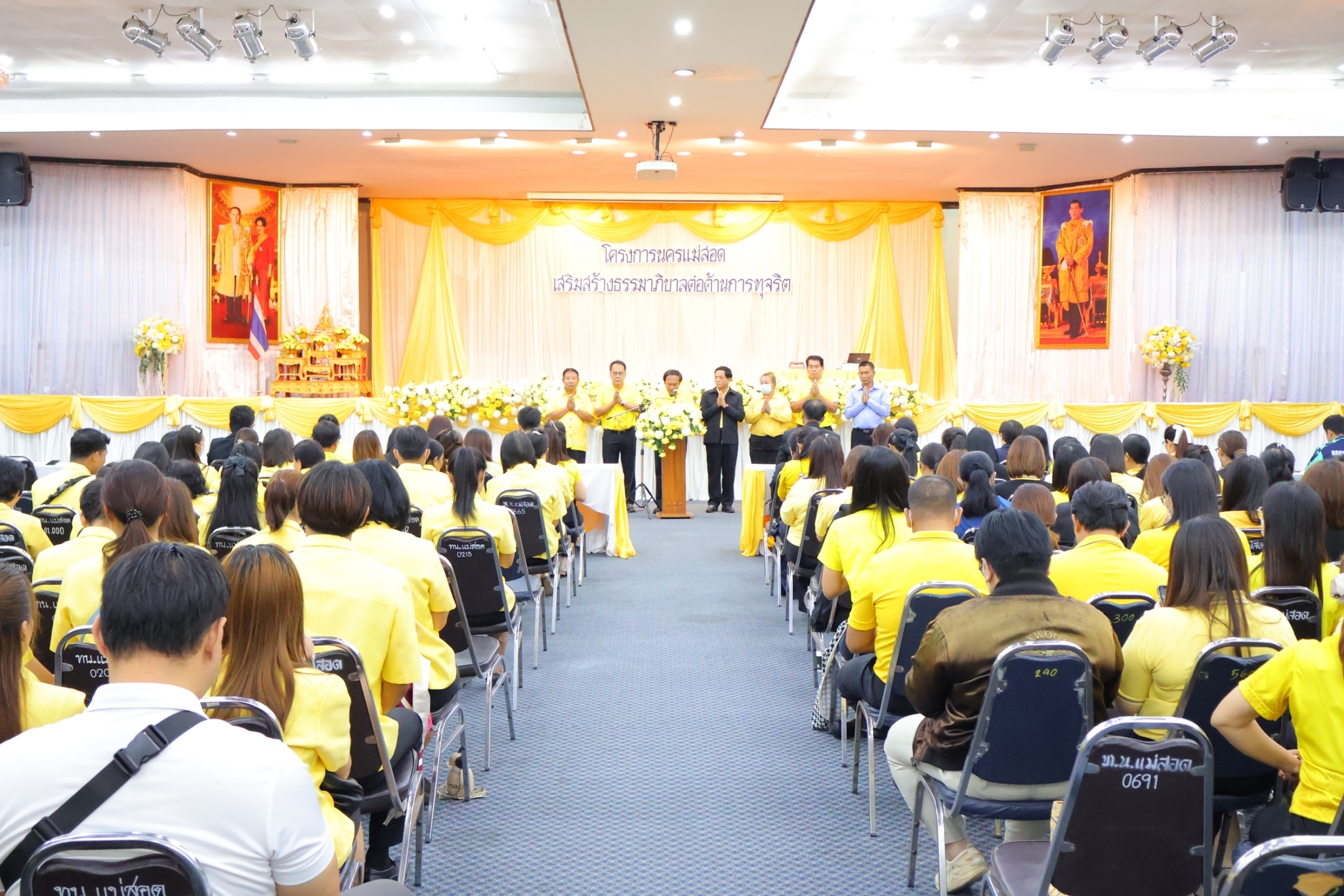 พร้อมคณะ รองนายกเทศมนตรี สมาชิกสภาเทศบาลนครแม่สอด ปลัดเทศบาล รองปลัดเทศบาล ผู้อำนวยการกองทุกกอง ผู้อำนวยการสถานศึกษาในสังกัดเทศบาลนครแม่สอด พนักงานเทศบาล พนักงานจ้าง คณะครูในสังกัดเทศบาลนครแม่สอด และพนักงานจ้างครูเทศบาล ร่วมโครงการนครแม่สอดเสริมสร้างธรรมาภิบาลต่อต้านการทุจริต