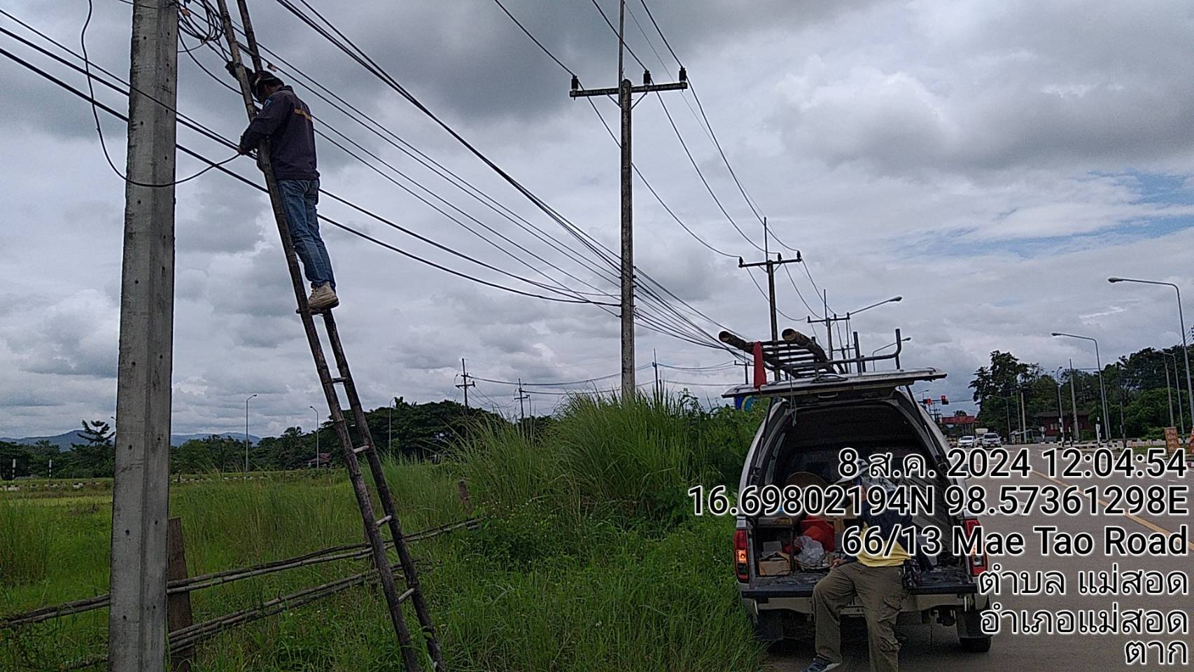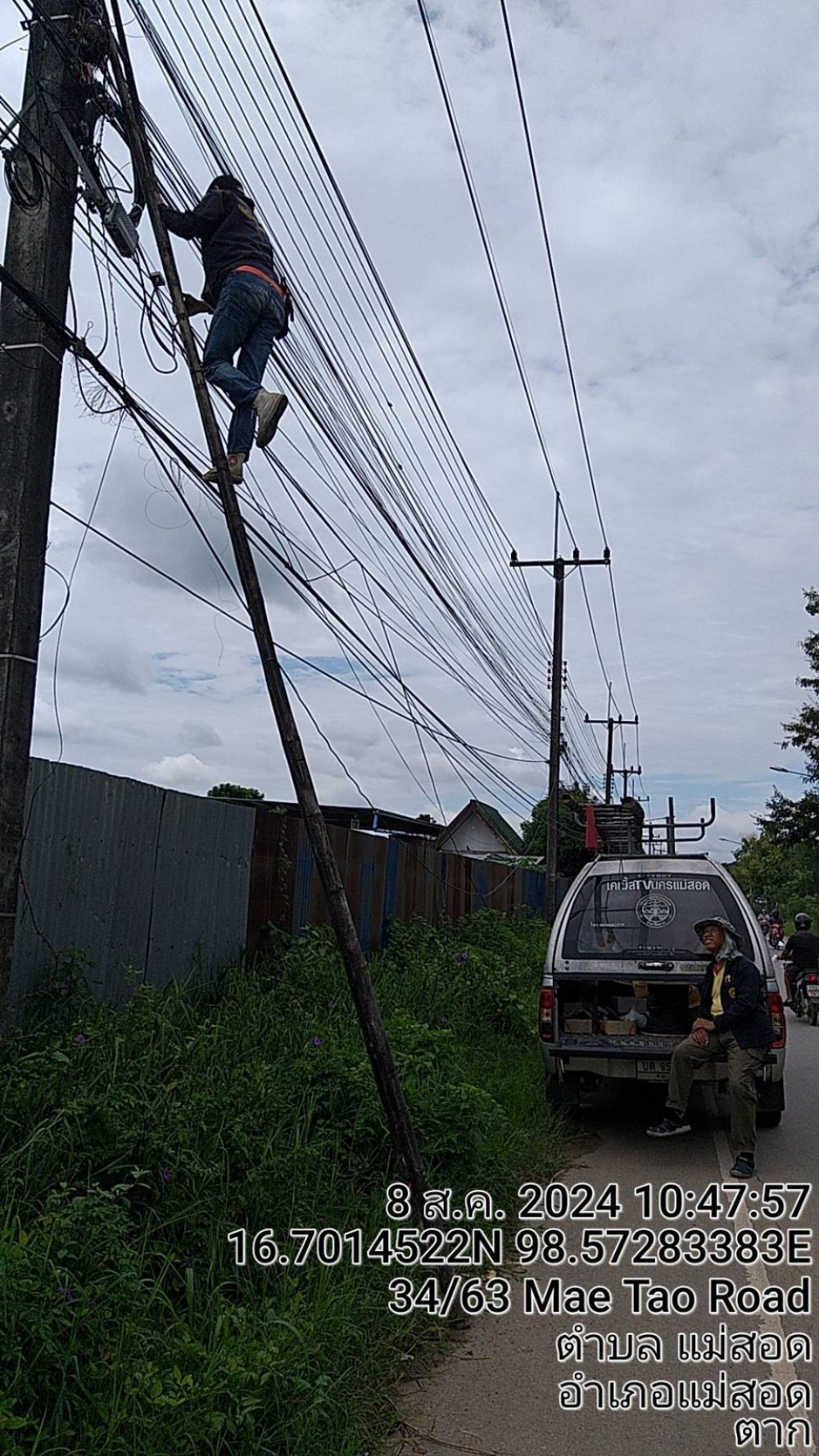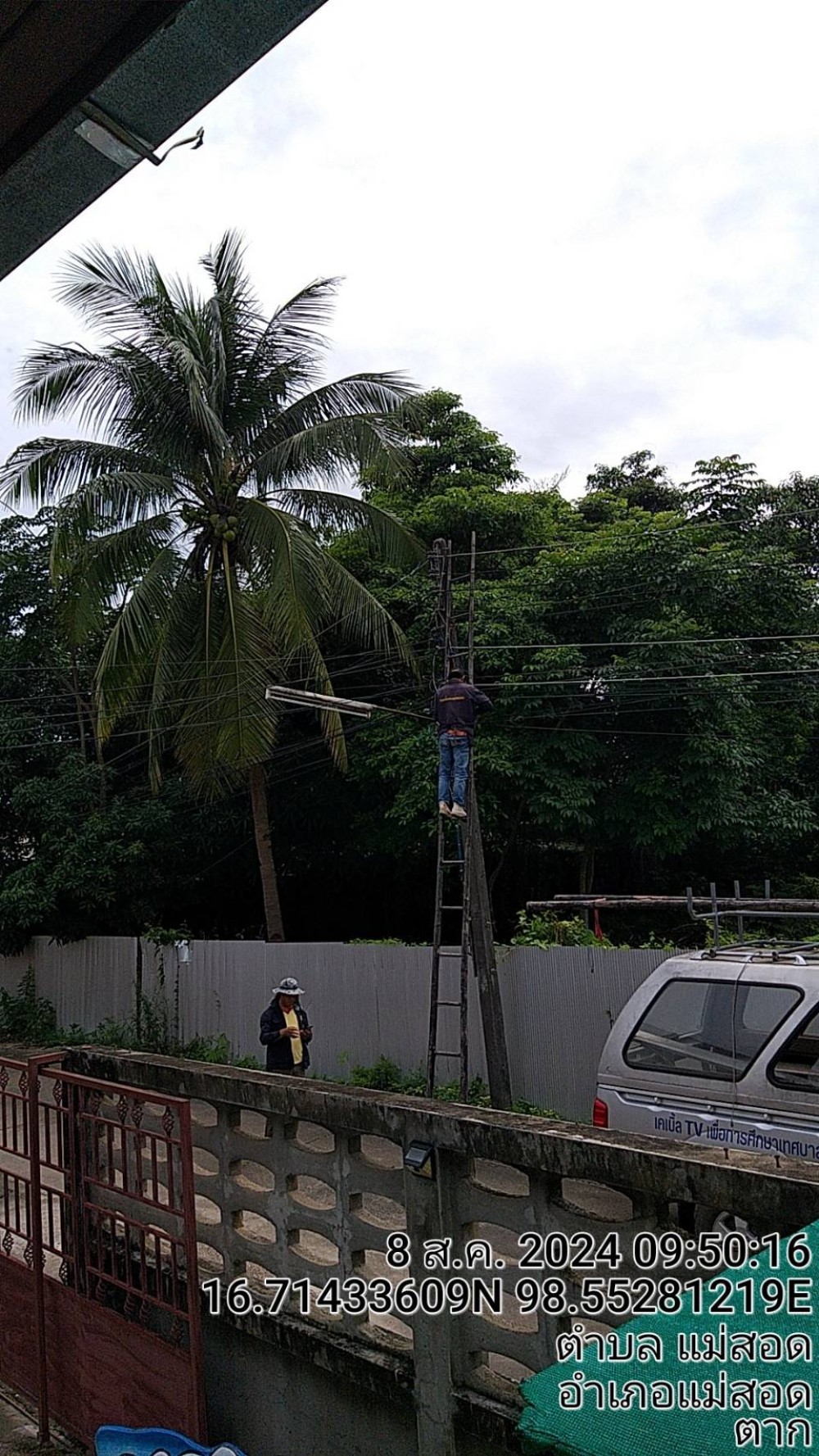 เจ้าหน้าที่กองยุทธศาสตร์และงบประมาณ ดำเนินการตามคำร้องขอตรวจสอบและซ่อมแซมเคเบิ้ลทีวี เพื่อการศึกษาเทศบาลนครแม่สอด ในวันที่ 8 สิงหาคม 2567
