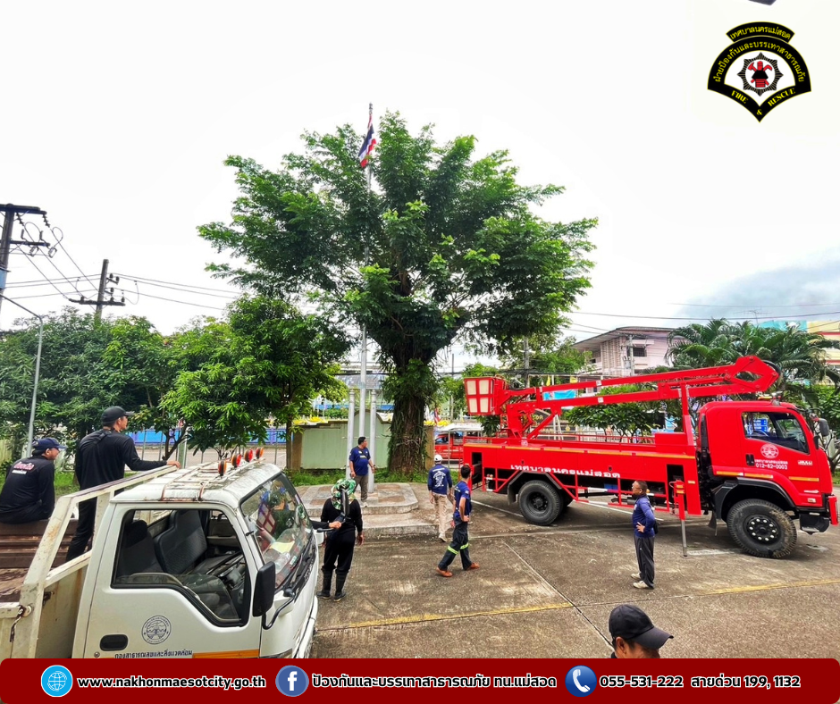 วันศุกร์ที่ 9 สิงหาคม 2567 เวลา 09.00 น. ดับเพลิงนครแม่สอด ได้รับคำร้องขอความอนุเคราะห์ตัดแต่งกิ่งไม้ เนื่องจากกิ่งไม้พาดสายไฟฟ้า/สื่อสาร ณ สำนักงานสรรพสามิตพื้นที่ตาก สาขาแม่สอด จังหวัดตาก