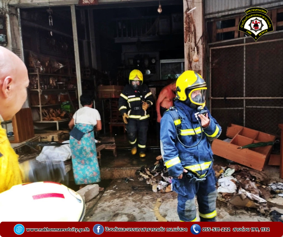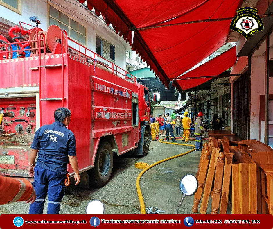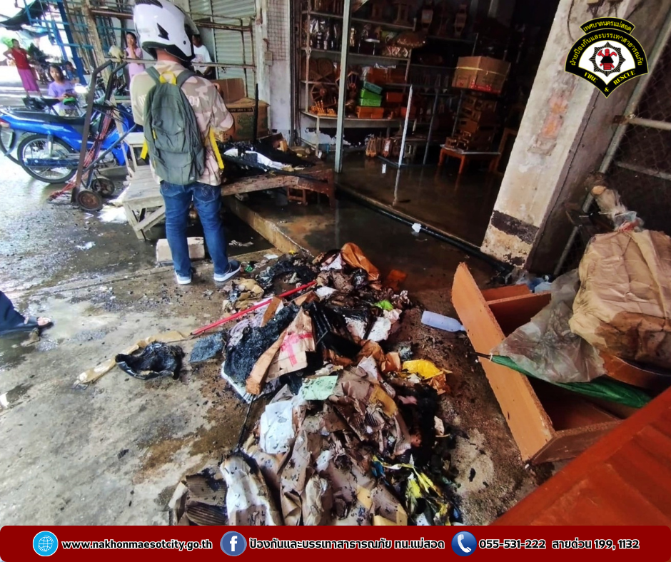 วันศุกร์ที่ 9 สิงหาคม 2567 เวลา 09.55 น. ฝ่ายป้องกันและบรรเทาสาธารณภัย เทศบาลนครแม่สอด ได้รับแจ้งจากประชาชน ว่ามีเหตุเพลิงไหม้บ้านเรือนประชาชน บริเวณร้านเฟอร์นิเจอร์ไม้ ใกล้เคียงร้านกระเพาะปลาริมเมย ตำบลท่าสายลวด อำเภอแม่สอด จังหวัดตาก
