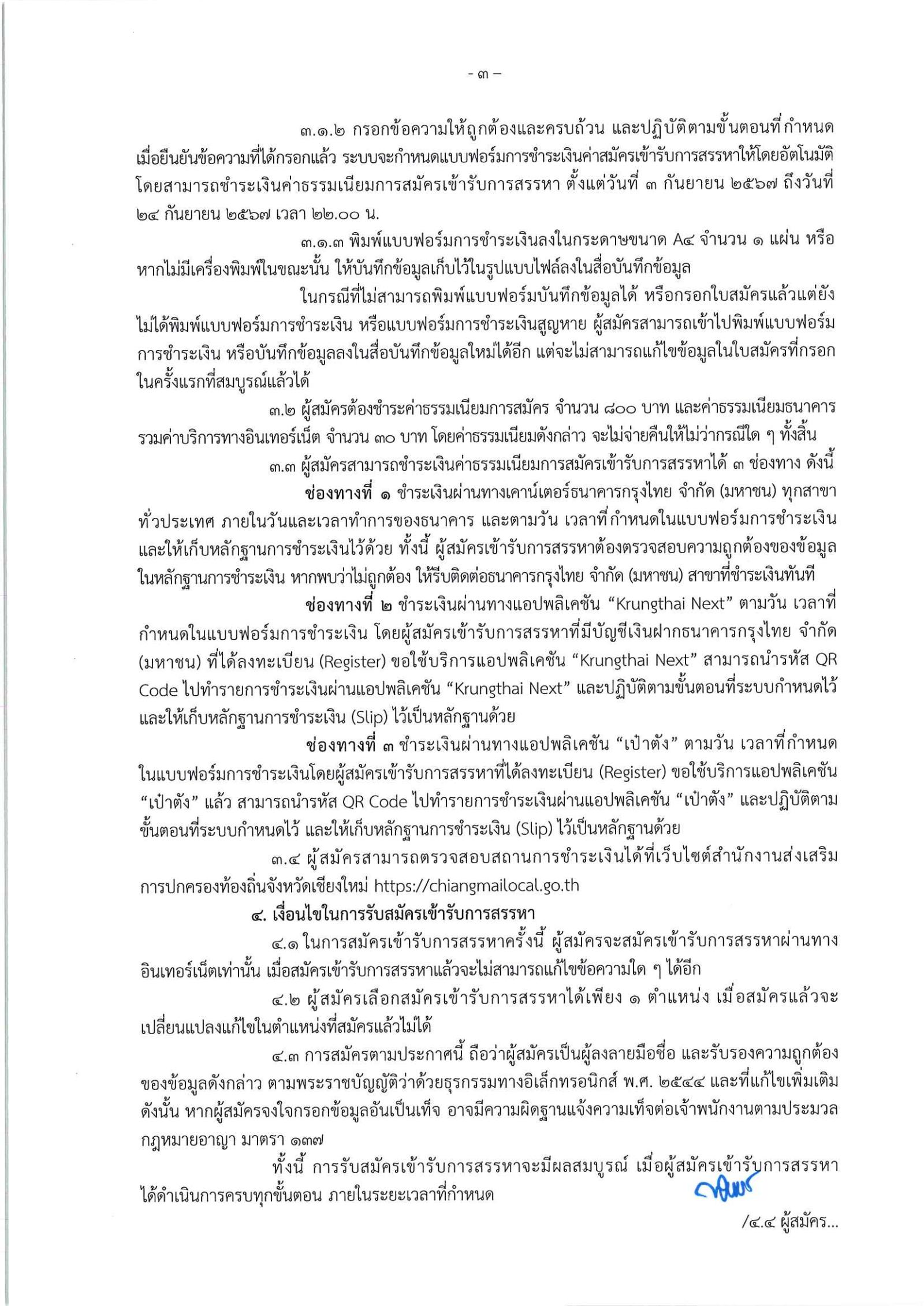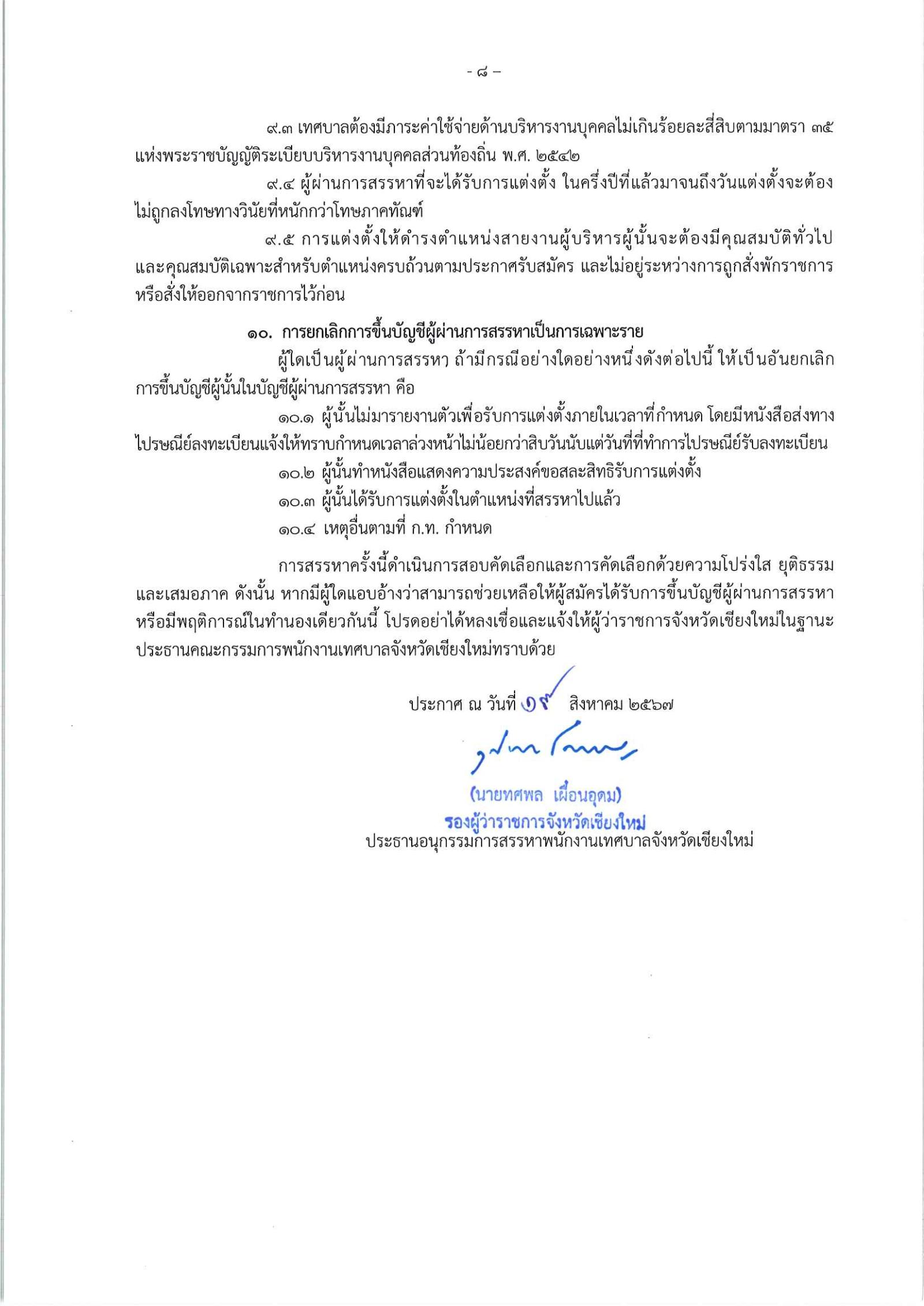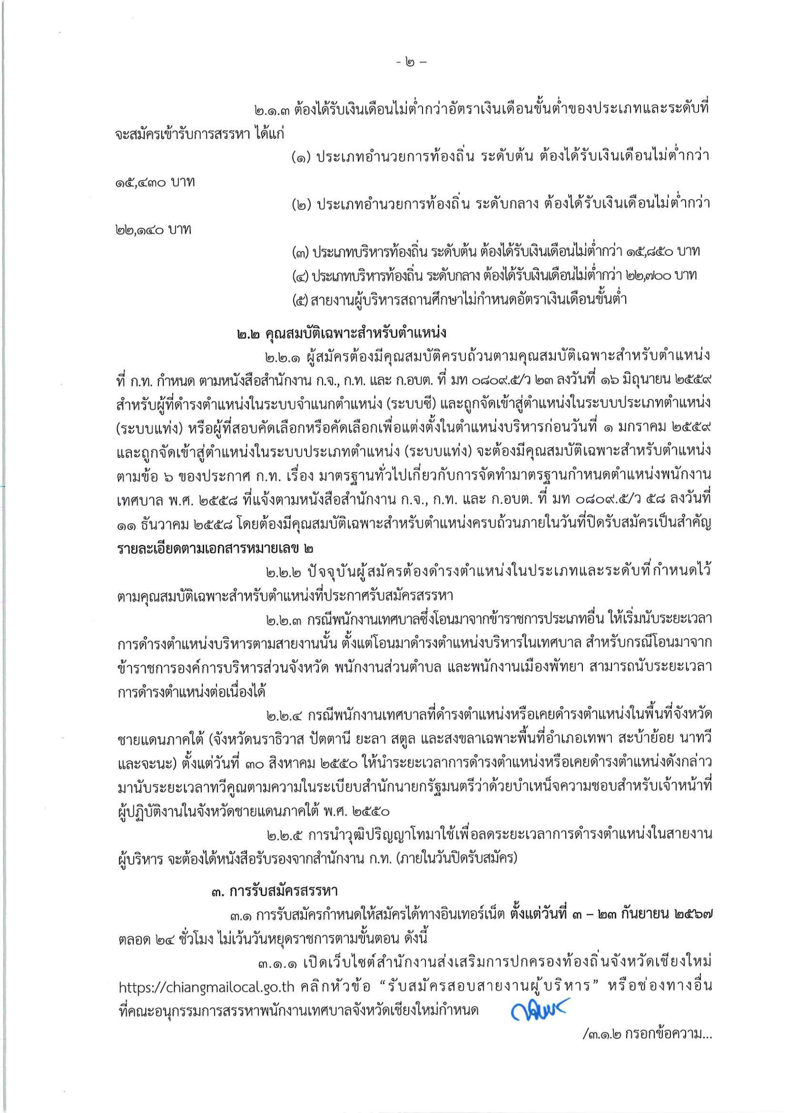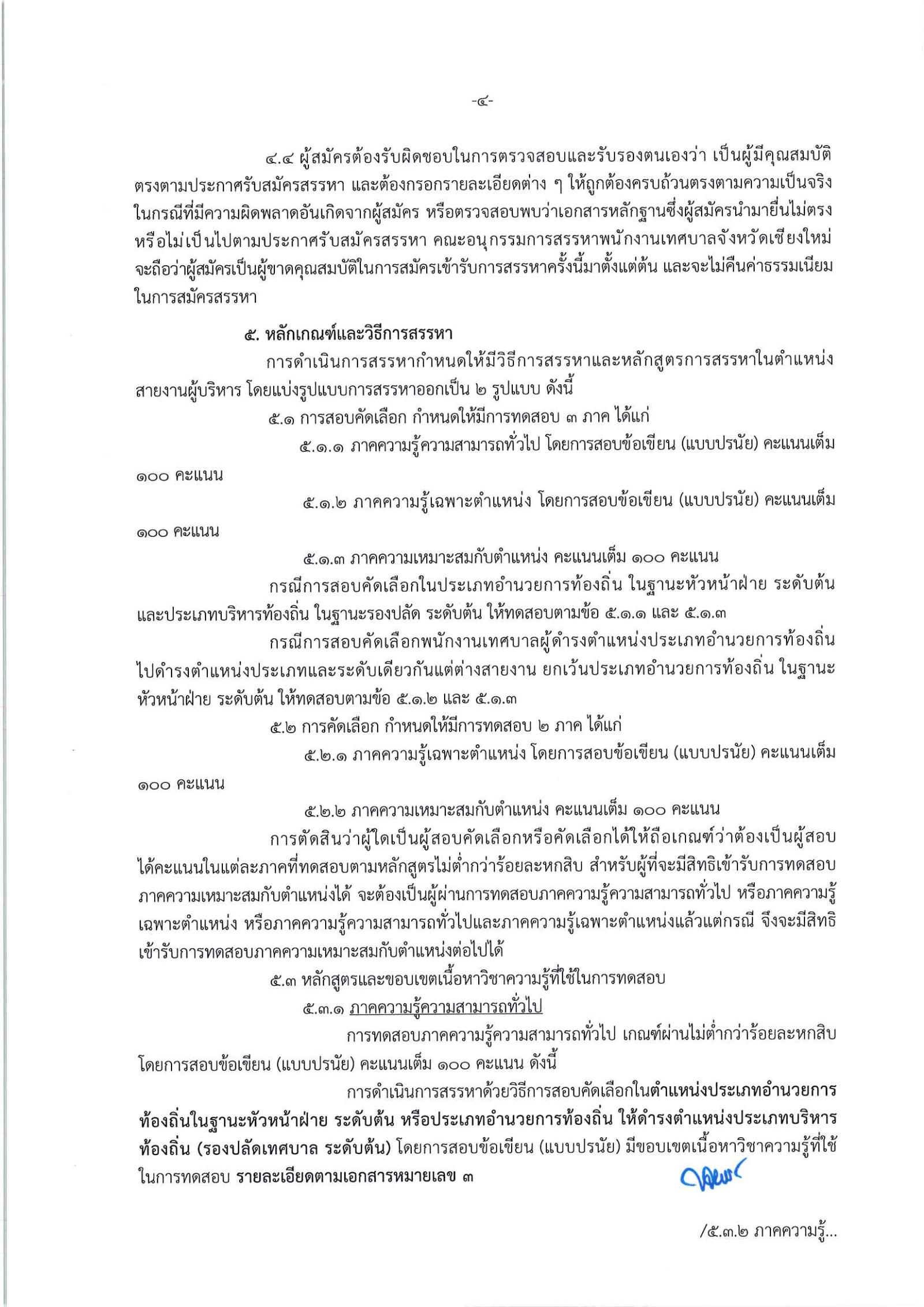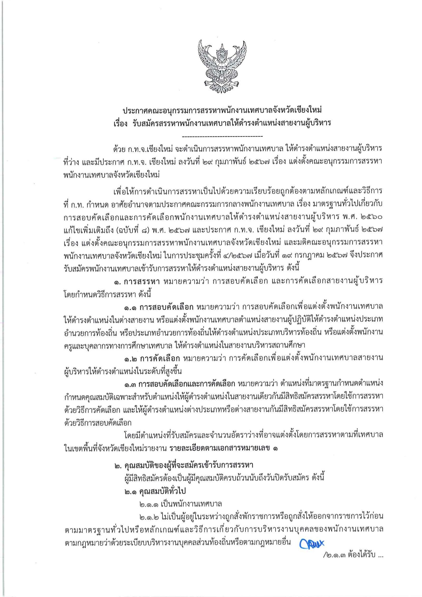 ประกาศรับสมัครสรรหาพนักงานเทศบาลให้ดำรงตำแหน่งสายงานผู้บริหาร จังหวัดเชียงใหม่