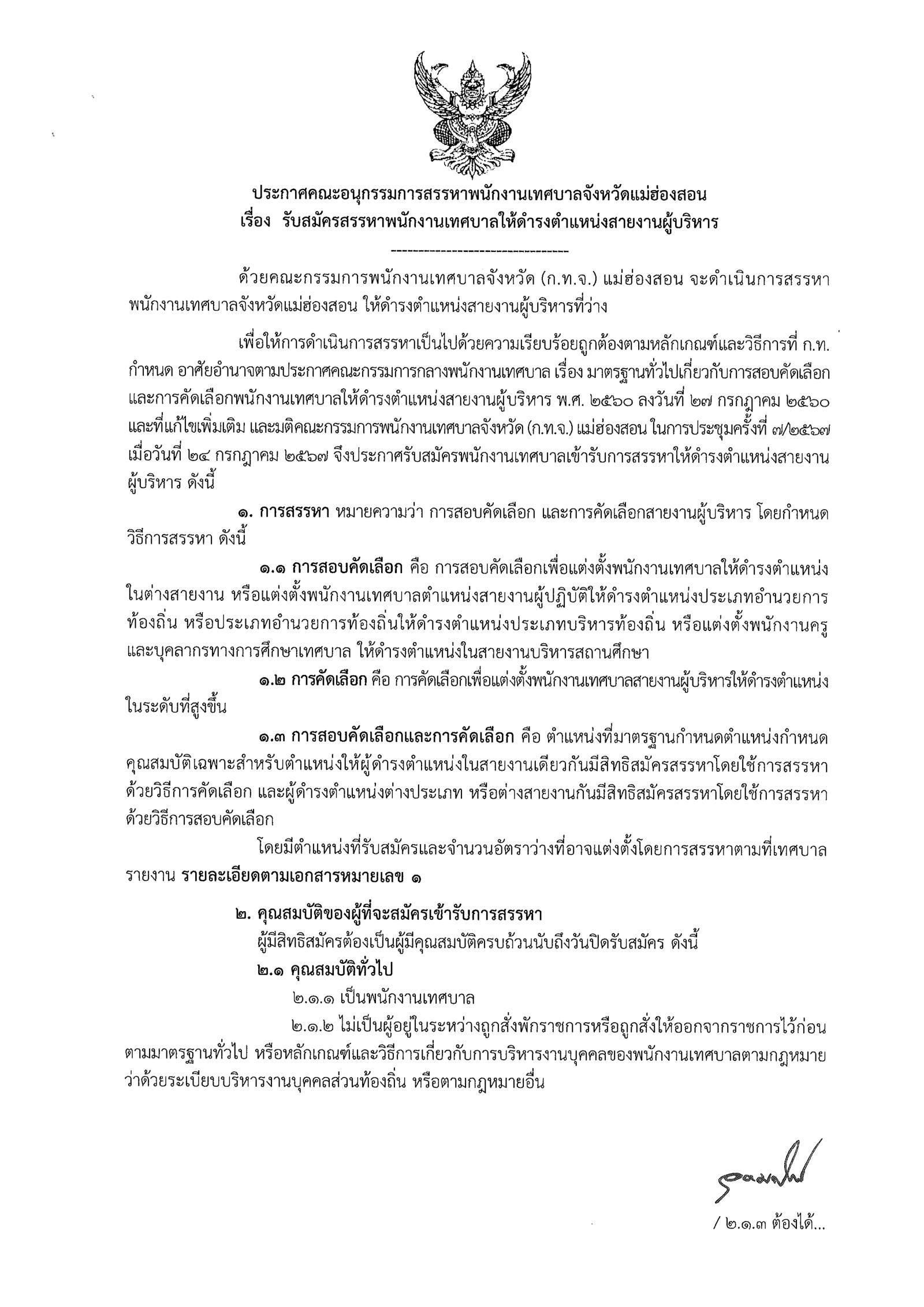 การรับสมัครสรรหาพนักงานเทศบาลให้ดำรงตำแหน่งสายงานบริหาร (ที่ มส 0023.2ว4048 ลงวันที่ 16 สิงหาคม 2567)