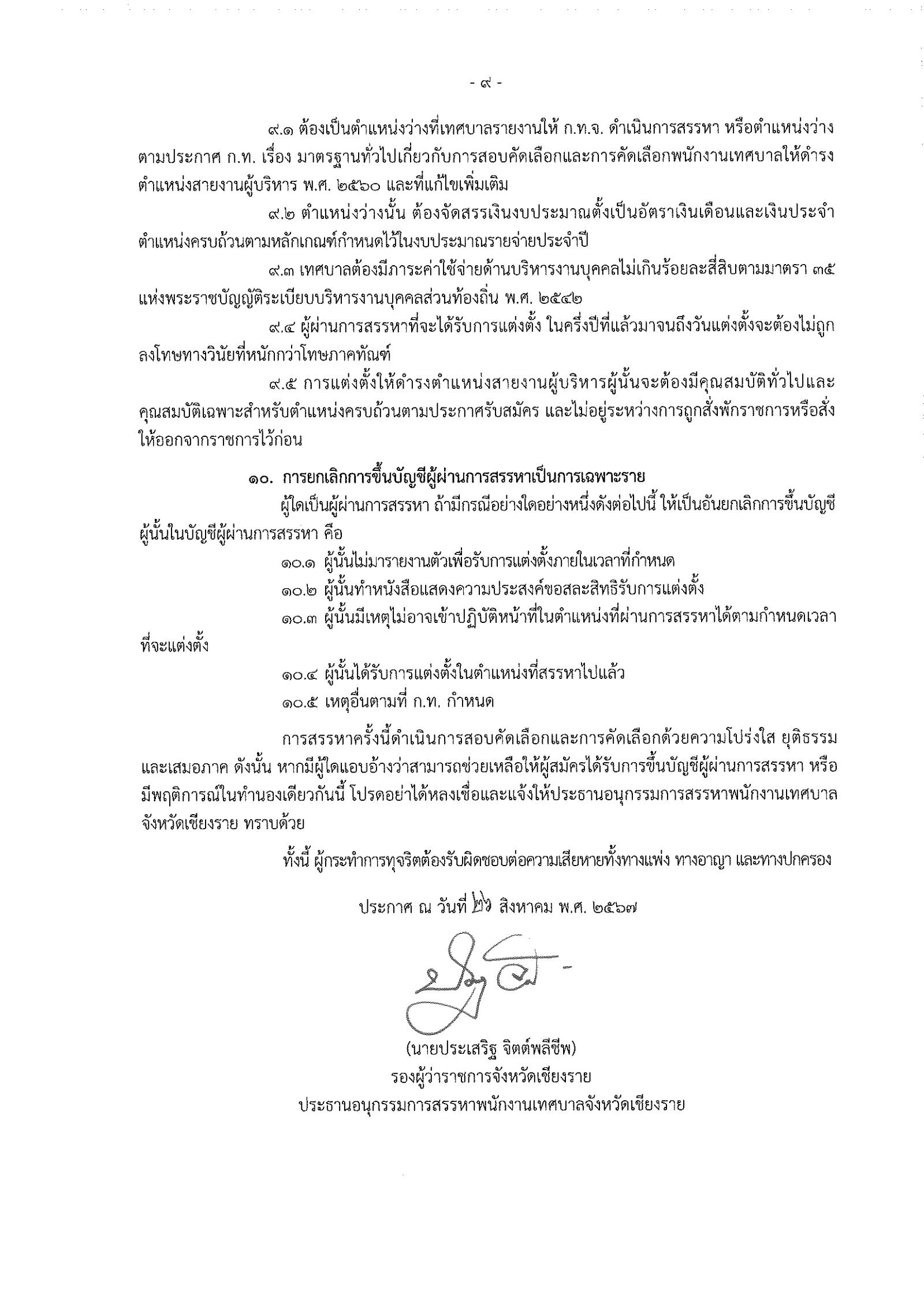 การรับสมัครสรรหาพนักงานเทศบาลให้ดำรงตำแหน่งสายงานบริหาร จังหวัดเชียงราย