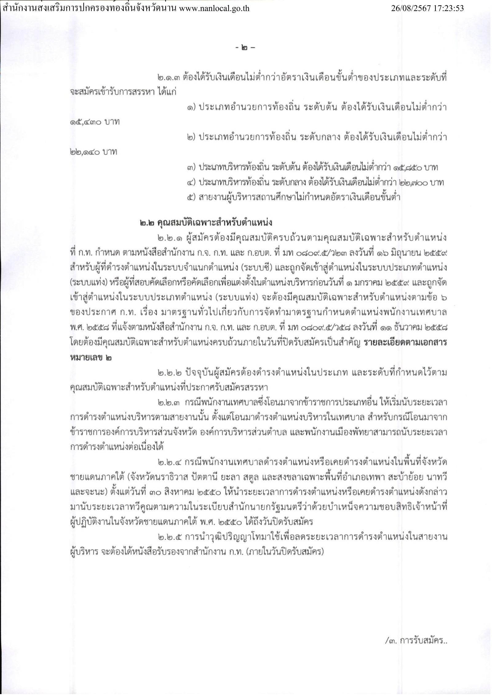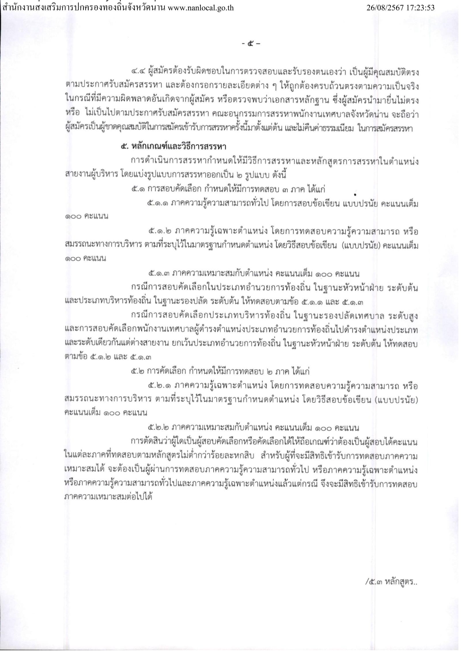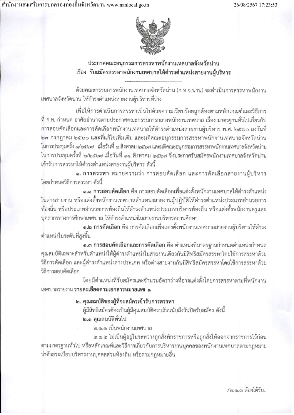 การรับสมัครสรรหาพนักงานเทศบาลให้ดำรงตำแหน่งสายงานบริหาร จังหวัดน่าน