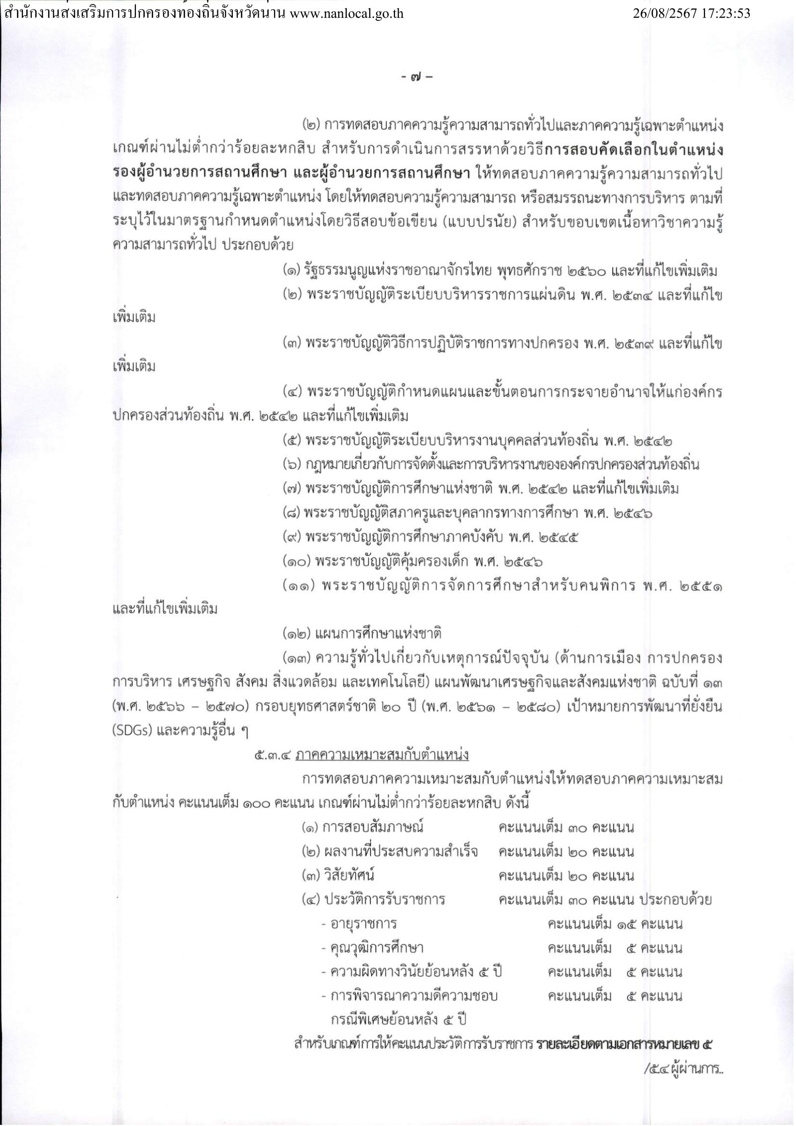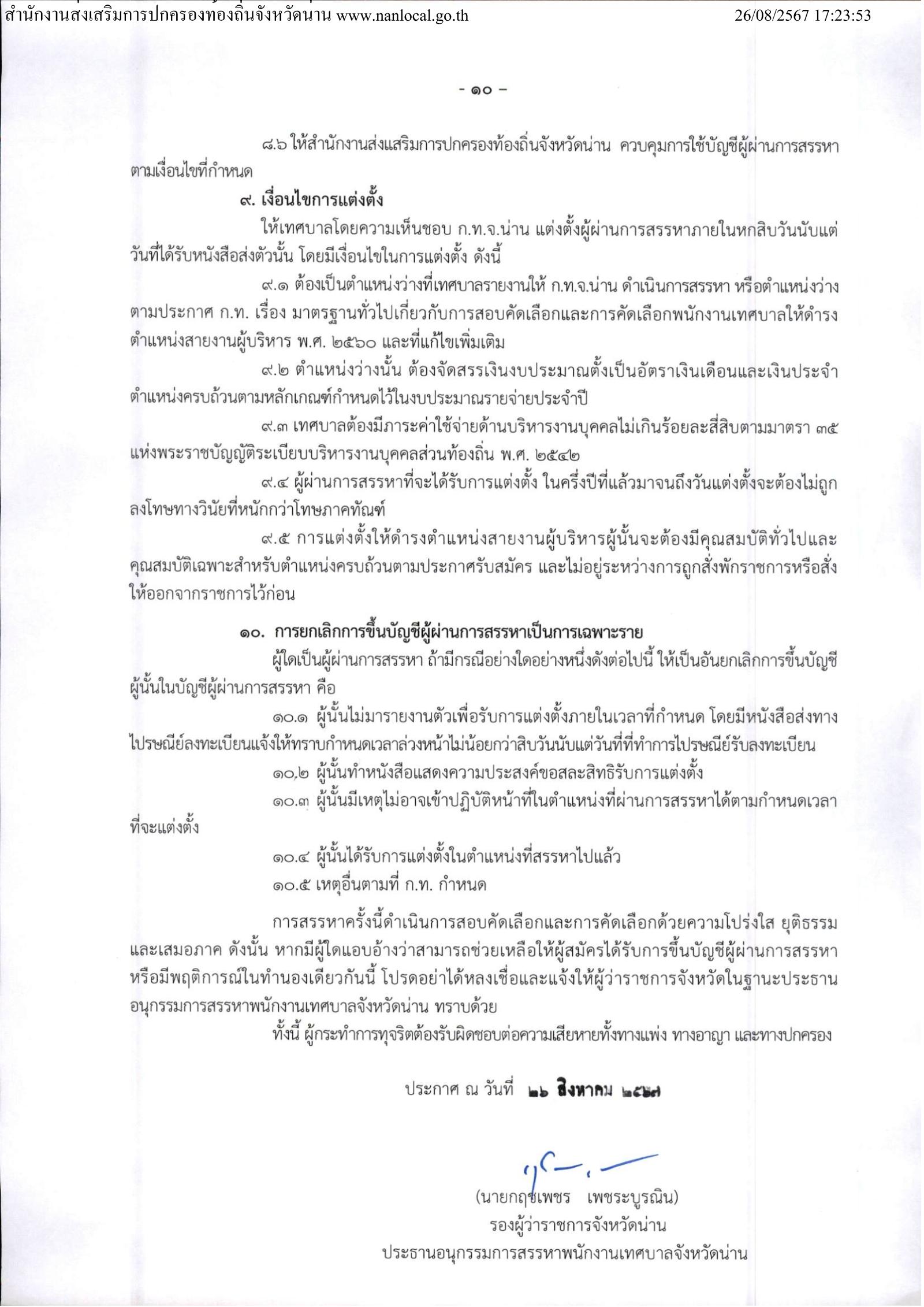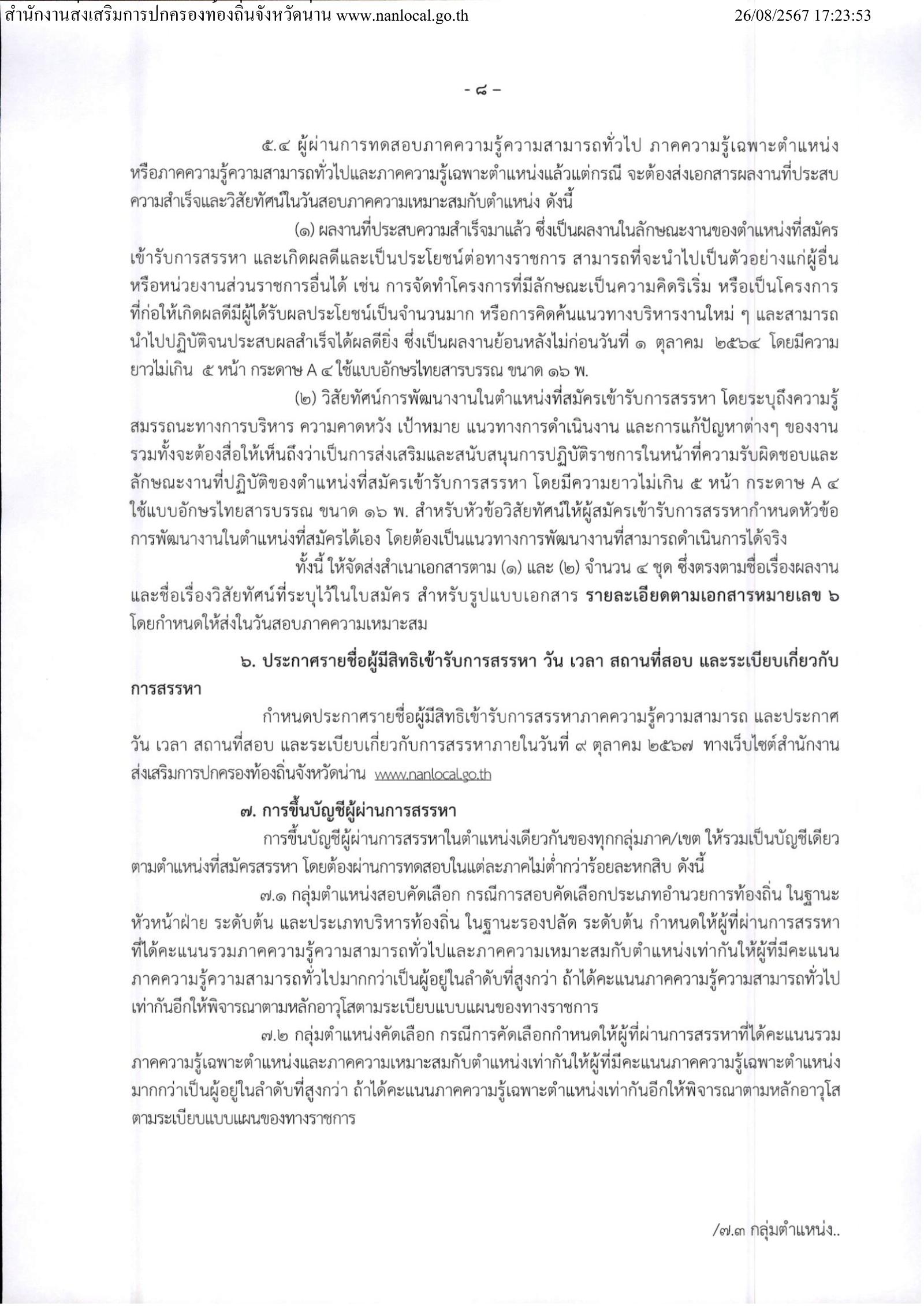 การรับสมัครสรรหาพนักงานเทศบาลให้ดำรงตำแหน่งสายงานบริหาร จังหวัดน่าน