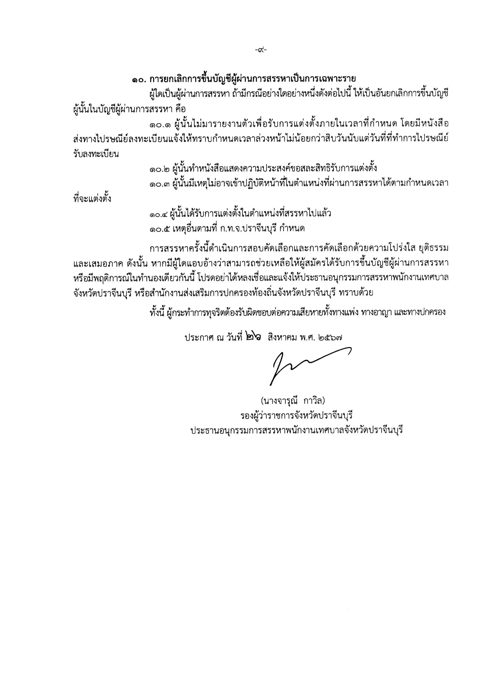 การรับสมัครสรรหาพนักงานเทศบาลให้ดำรงตำแหน่งสายงานบริหาร จังหวัดปราจีนบุรี