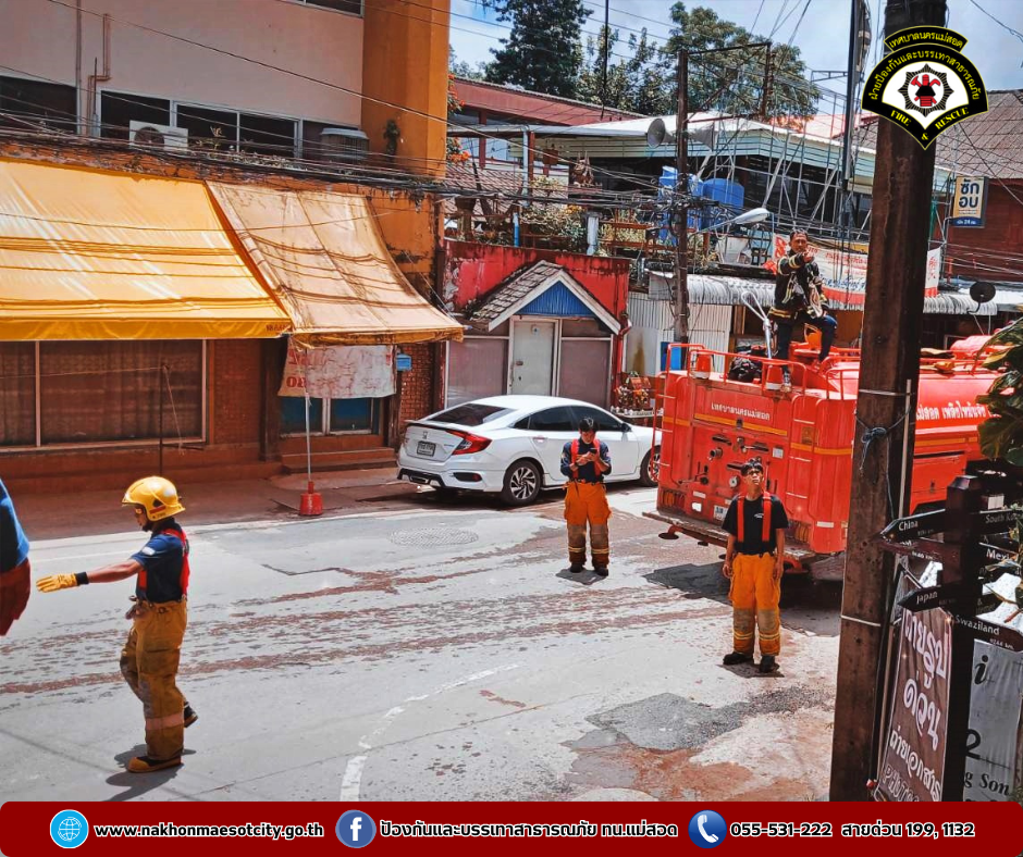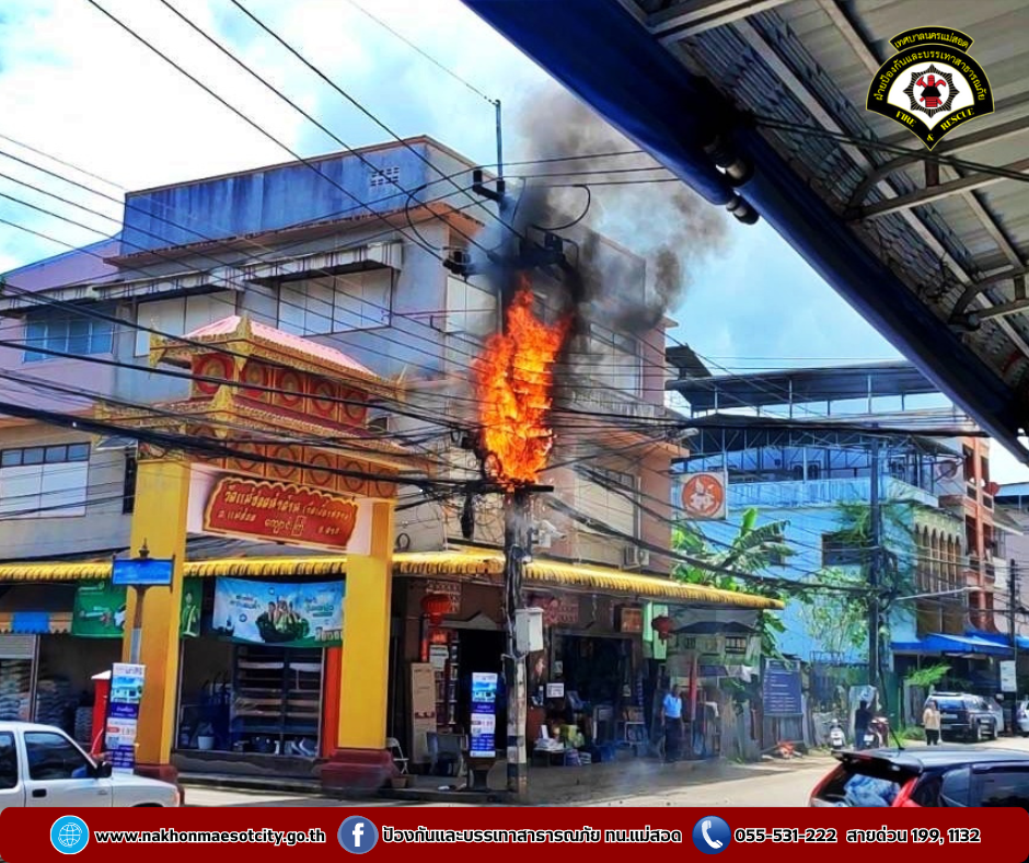 วันศุกร์ที่ 30 สิงหาคม 2567 เวลา 12.45 น. ฝ่ายป้องกันและบรรเทาสาธารณภัย เทศบาลนครแม่สอด ได้รับแจ้งจากประชาชน ว่ามีเหตุเพลิงไหม้สายไฟฟ้า สายสื่อสาร บริเวณถนนประสาทวิถี ใกล้เคียงวัดแม่ซอดน่าด่าน (วัดเงี้ยวหลวง) ตำบลแม่สอด อำเภอแม่สอด จังหวัดตาก