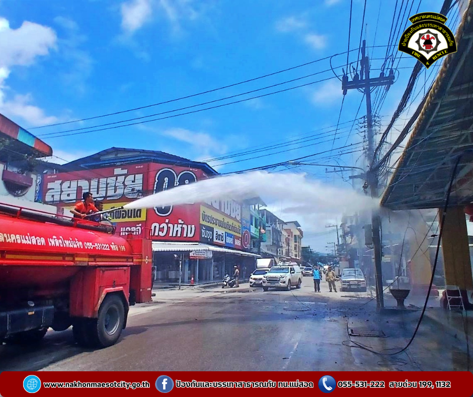 ฝ่ายป้องกันและบรรเทาสาธารณภัย เทศบาลนครแม่สอด จึงรายงานว่าที่ร้อยตรีประเสริฐ ปวงละคร นายกเทศมนตรีนครแม่สอด ทราบ และได้นำรถยนต์บรรทุกน้ำดับเพลิง จำนวน 2 คัน พร้อมนักผจญเพลิง ร่วมกับเจ้าหน้าที่การไฟฟ้าแม่สอด และสายตรวจแม่สอด ออกตรวจสอบ ณ ที่เกิดเหตุ