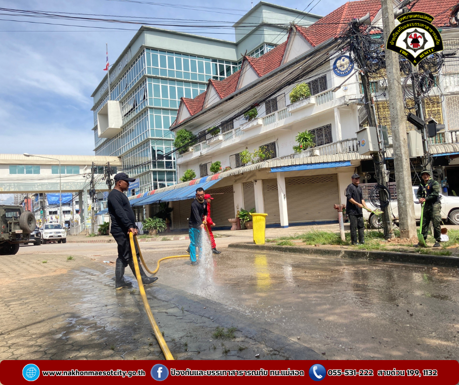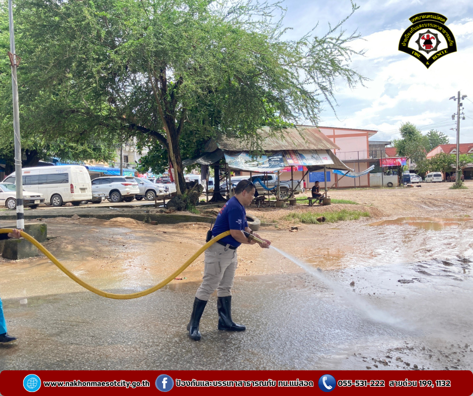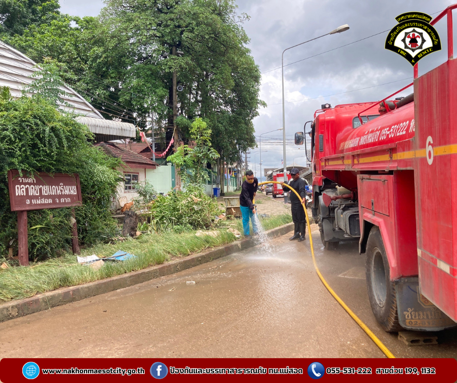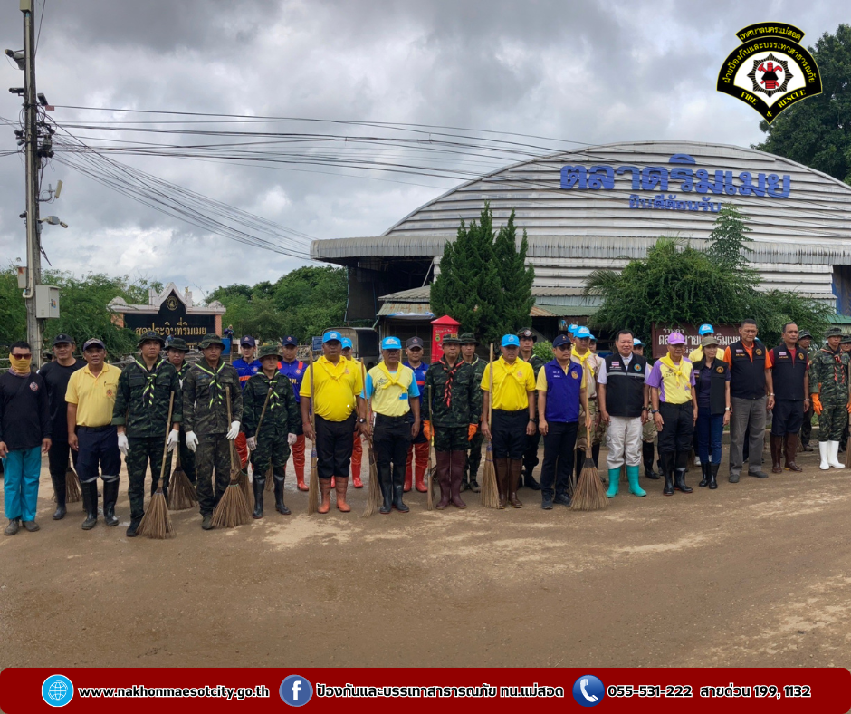 โดยเป็นการบูรณาการณ์ร่วมกันทำความสะอาดฉีดล้างบริเวณตลาดริมเมย อำเภอแม่สอด จังหวัดตาก หลังจากสถานการณ์แม่น้ำเมยที่เอ่อล้นตลิ่งได้คลี่คลายลงให้กลับมารองรับนักท่องเที่ยวได้ตามปกติ