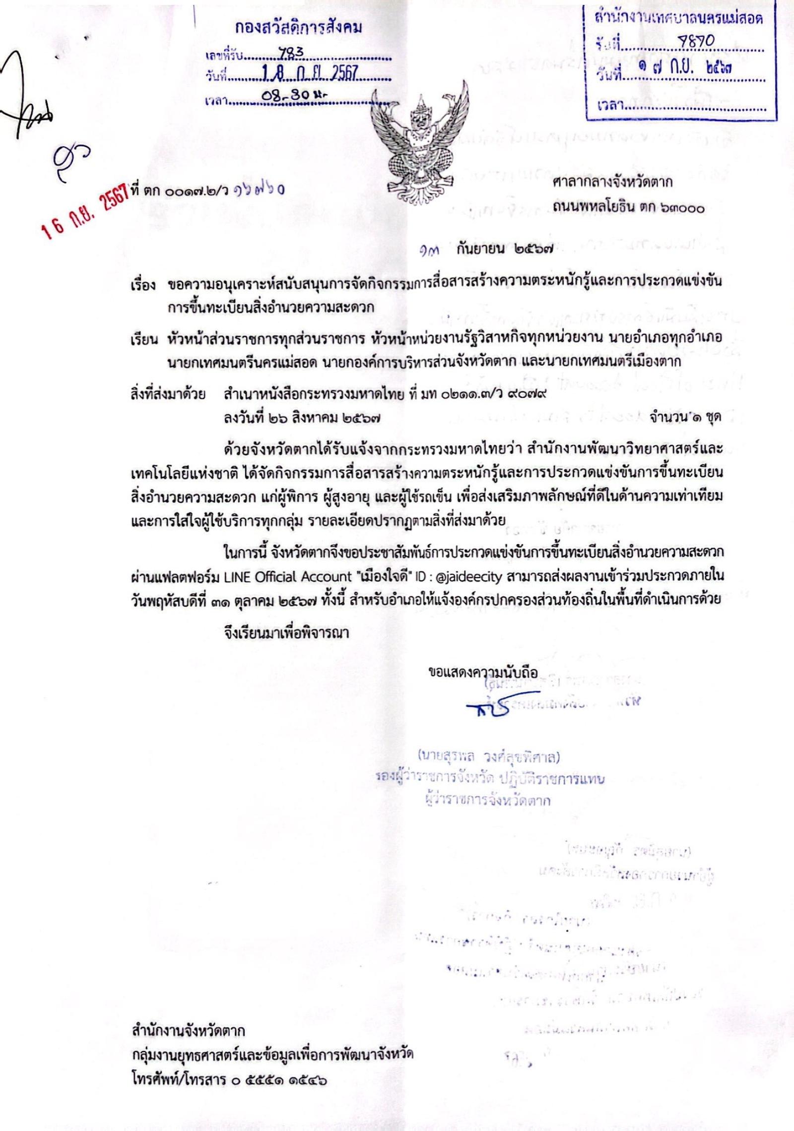 ประชาสัมพันธ์สนับสนุนการจัดกิจกรรมการสื่อสารสร้างความตระหนักรู้และการประกวดแข่งขันการขึ้นทะเบียนสิ่งอำนวยความสะดวก
