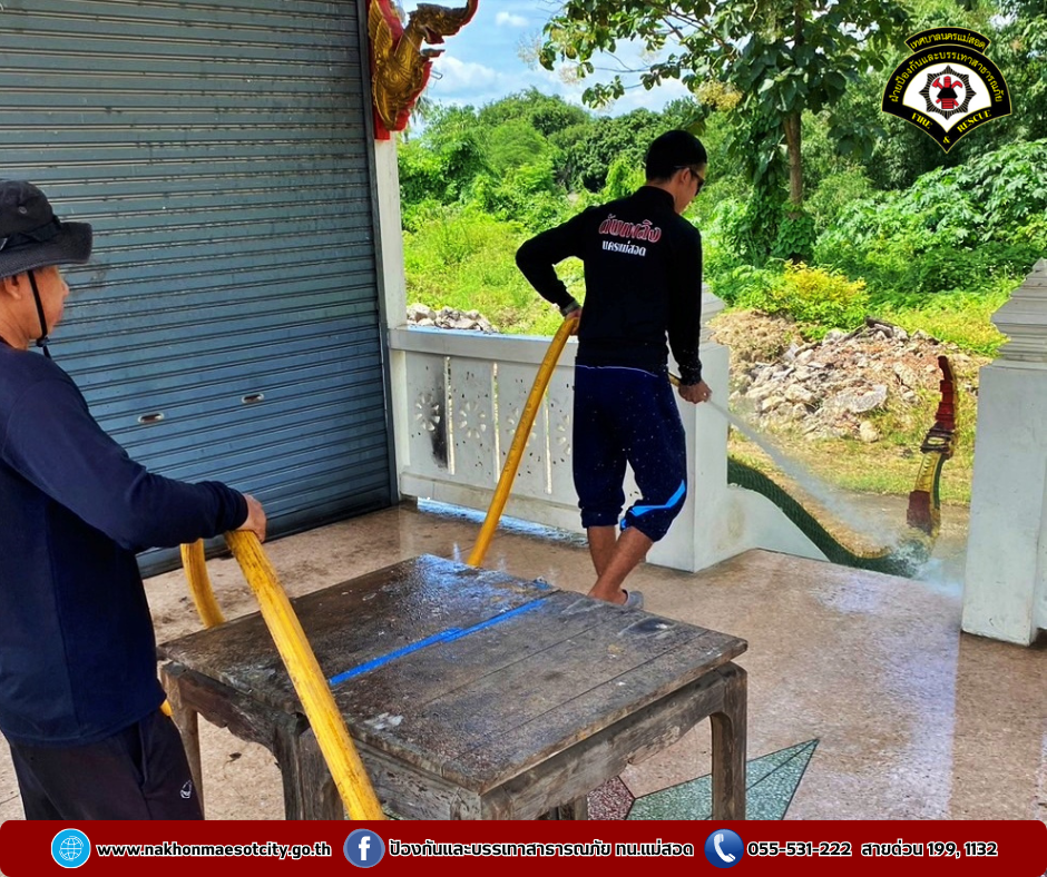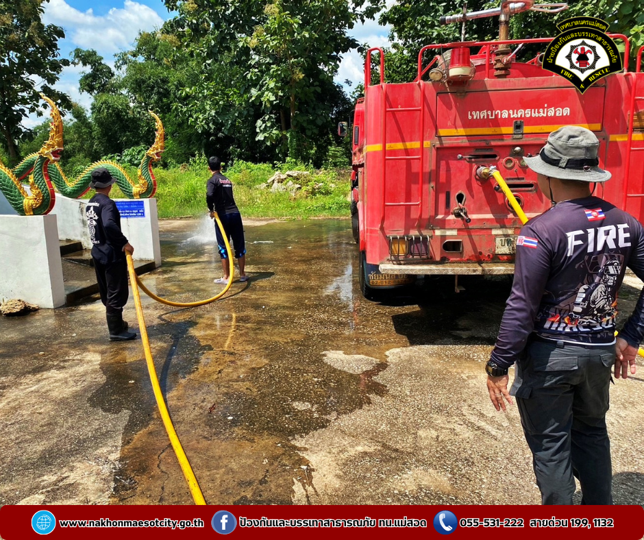 วันศุกร์ที่ 20 กันยายน 2567 เวลา 13.30 น. ว่าที่ร้อยตรี ประเสริฐ ปวงละคร นายกเทศมนตรีนครแม่สอด มอบหมายให้ดับเพลิงนครแม่สอด นำรถยนต์บรรทุกน้ำดับเพลิง จำนวน 1 คัน พร้อมเจ้าหน้าที่ ออกดำเนินการฉีดล้างทำความสะอาด บริเวณสุสานวัดดอนแก้ว อำเภอแม่สอด จังหวัดตาก เพื่อเป็นการทำความสะอาด ระเบียบเรียบร้อย ลดปริมาณฝุ่นละอองในอากาศ