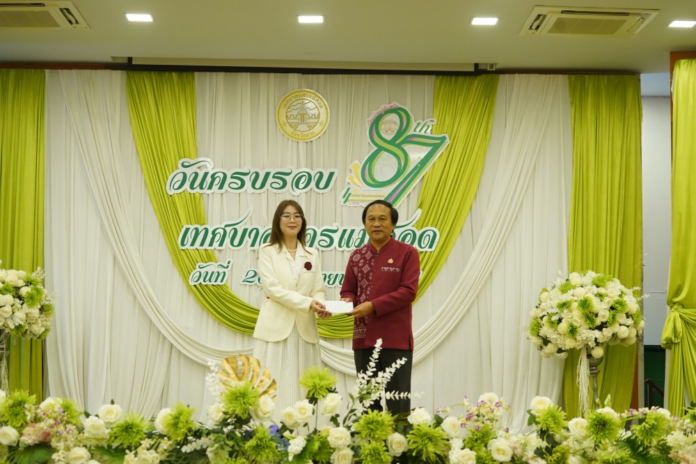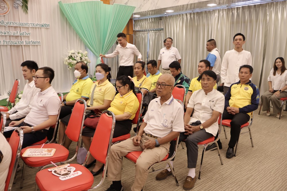 พร้อมคณะ รองนายกเทศมนตรี สมาชิกสภาเทศบาลนครแม่สอด ปลัดเทศบาล รองปลัดเทศบาล ผู้อำนวยการกอง ผู้อำนวยการสถานศึกษาในสังกัดเทศบาลนครแม่สอด ร่วมด้วย