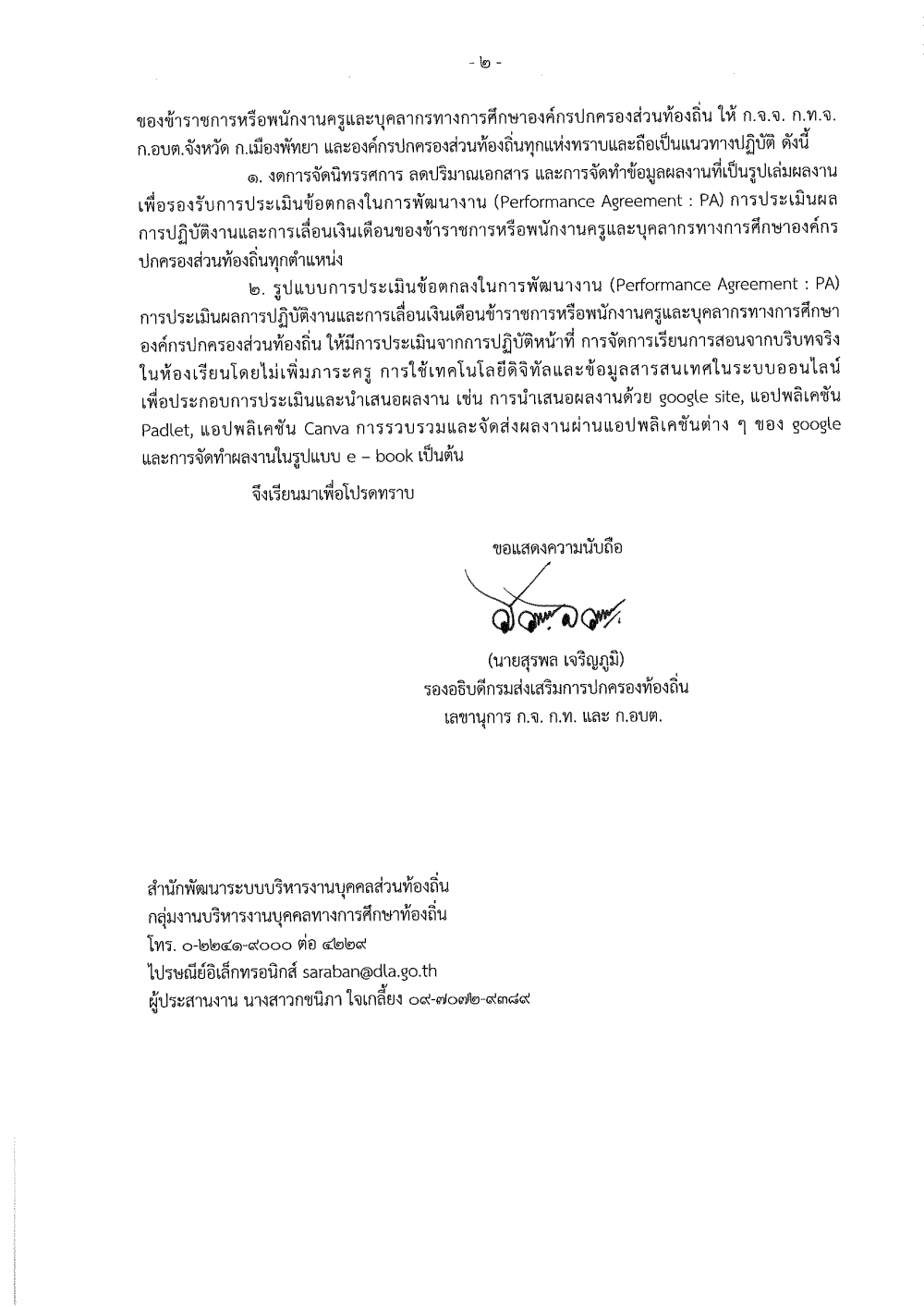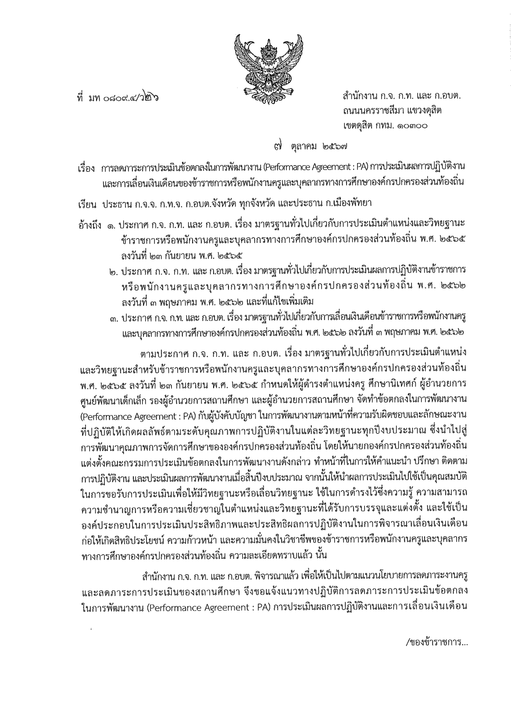 การลดภาระการประเมินข้อตกลงในการพัฒนางาน (Performance Agreement PA) การประเมินผลการปฏิบัติงานและการเลื่อนเงินเดือนของข้าราชการหรือพนักงานครูและบุคลากรทางการศึกษาองค์กรปกครองส่วนท้องถิ่น