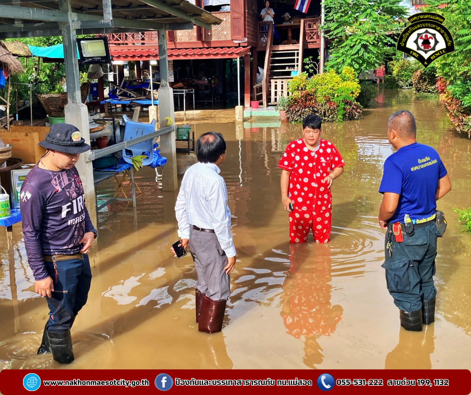 วันศุกร์ที่ 4 ตุลาคม 2567 เวลา 08.30 น.ว่าที่ร้อยตรีประเสริฐ ปวงละคร นายกเทศมนตรีเทศบาลนครแม่สอด พร้อมคณะผู้บริหาร และเจ้าหน้าที่ฝ่ายป้องกันและบรรเทาสาธารณภัย ร่วมลงพื้นที่สำรวจและให้การช่วยเหลือประชาชนที่ได้รับผลกระทบจากอุทกภัยจนผ่านพ้นไปได้ด้วยดี