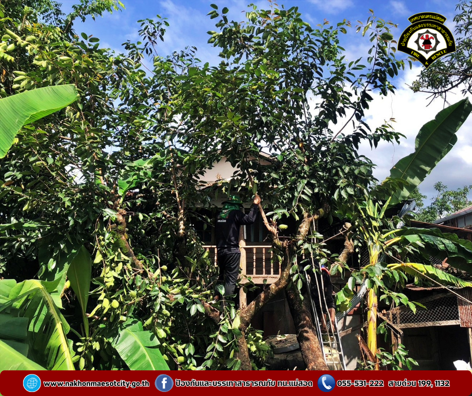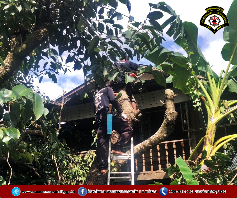 ว่าที่ร้อยตรีประเสริฐ ปวงละคร นายกเทศมนตรีนครแม่สอด ร่วมลงพื้นที่กับฝ่ายป้องกันและบรรเทาสาธารณภัย นำรถยนต์บรรทุก 6 ล้อ พร้อมอุปกรณ์ ดำเนินการตัดต้นไม้ที่โค่นล้มทับบ้านเรือนของประชาชนดังกล่าว โดยใช้เลื่อยโซ่ยนต์ และใช้มีด ดำเนินการตัดจนแล้วเสร็จ พร้อมยกใส่รถยนต์บรรทุก 6 ล้อ ดำเนินการนำกิ่งไม้ไปทิ้งต่อไป เพื่อความเป็นระเบียบเรียบร้อย และความปลอดภัยบริเวณดังกล่าว
