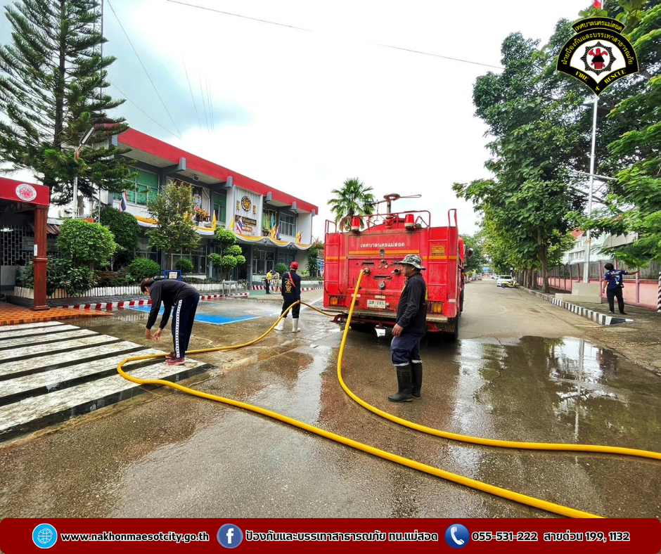 วันศุกร์ที่ 18 ตุลาคม 2567 เวลา 09.30 น. ว่าที่ร้อยตรี ประเสริฐ ปวงละคร นายกเทศมนตรีนครแม่สอด มอบหมายให้เจ้าหน้าที่ดับเพลิงนครแม่สอด นำรถยนต์บรรทุกน้ำดับเพลิง จำนวน 1 คัน ออกดำเนินการฉีดล้างทำความสะอาด ลานอเนกประสงค์ของเรือนจำอำเภอแม่สอด จังหวัดตาก ตามคำร้องขอความอนุเคราะห์ฯ เพื่อขจัดเศษ หิน ดิน ทราย รวมถึงสิ่งปนเปื้อนบนพื้นผิวถนน