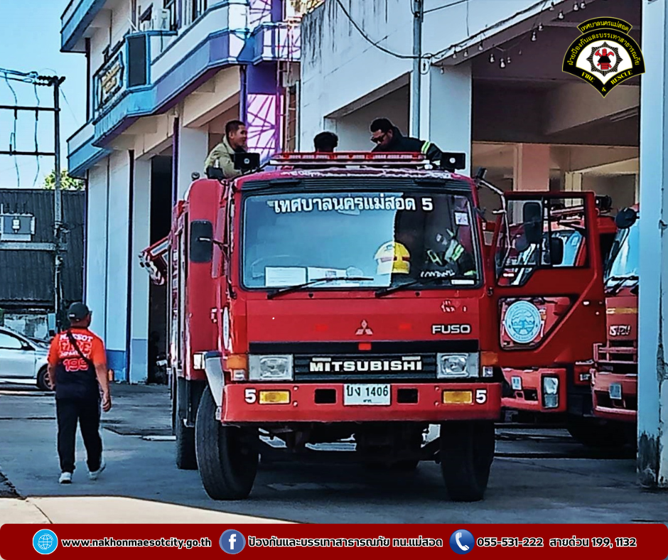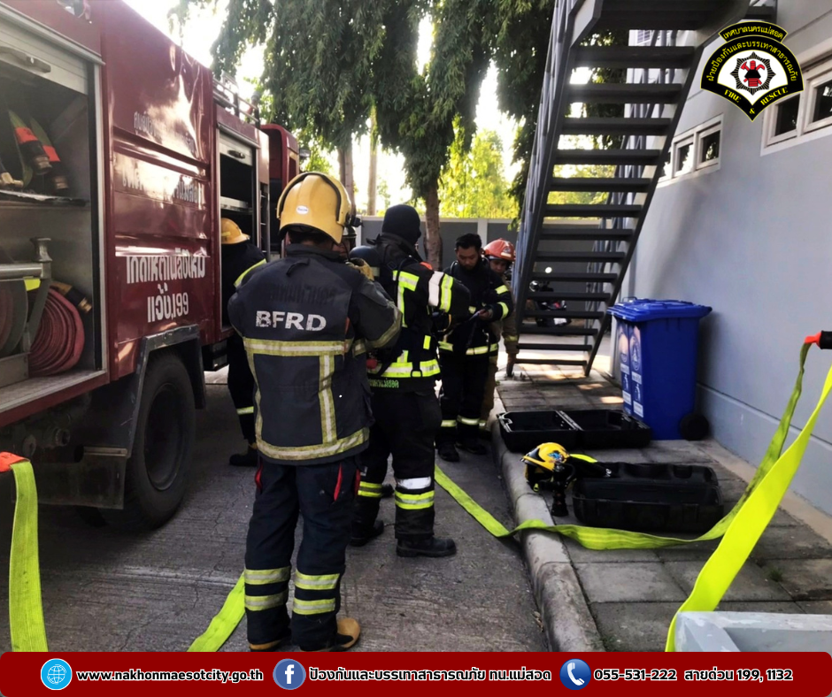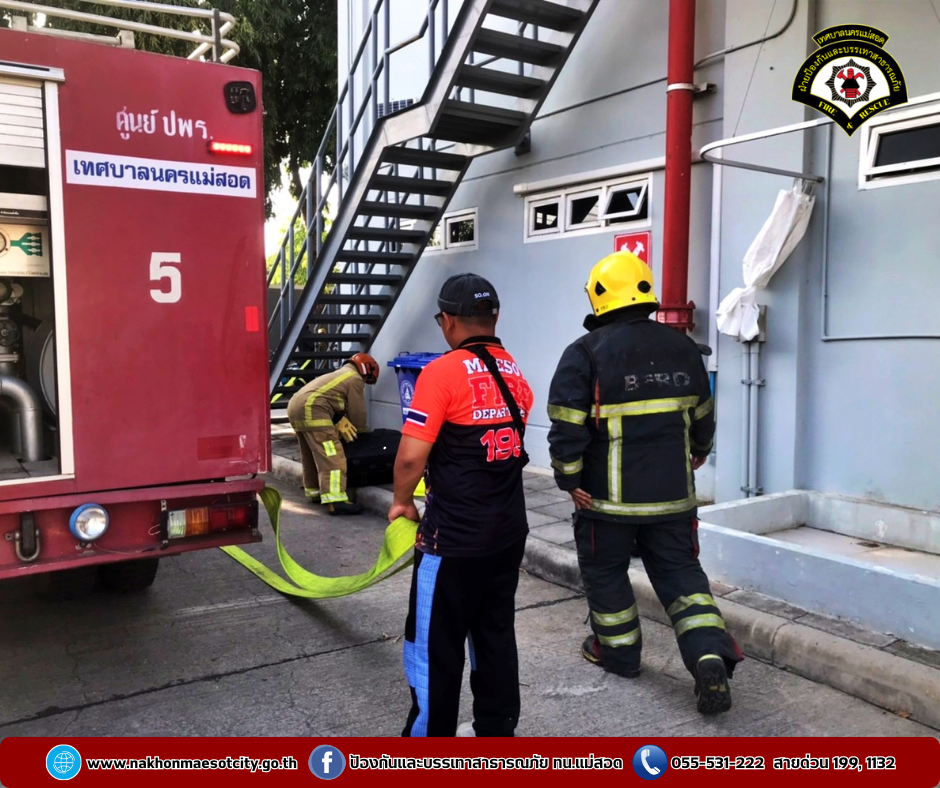 ฝ่ายป้องกันและบรรเทาสาธารณภัย เทศบาลนครแม่สอด จึงนำรถยนต์บรรทุกน้ำดับเพลิง จำนวน 1 คัน พร้อมชุดผจญเพลิง ออกดำเนินการตามโครงการอบรมเชิงปฏิบัติการเรื่องการอบรมดับเพลิงเบื้องต้นและอพยพหนีไฟ ประจำปี 2567 ของโรงพยาบาลจุฬารัตน์ แม่สอด ร่วมกับโรงพยาบาลแม่สอด สถานีตำรวจภูธรแม่สอด