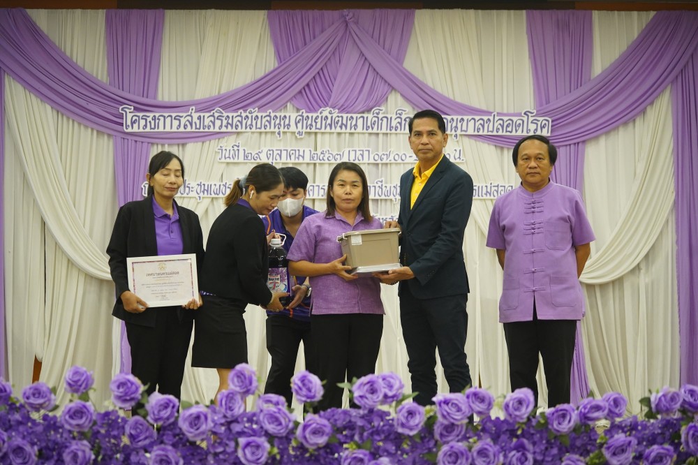 วันที่ 29 ตุลาคม 2567 ณ ห้องประชุมเพชรน้ำหนึ่ง ชั้น 6 อาคารส่งเสริมอาชีพชุมชนเทศบาลนครแม่สอด ว่าที่ร้อยตรีประเสริฐ ปวงละคร นายกเทศมนตรีนครแม่สอด รองนายกเทศมนตรี เลขานุการ ที่ปรึกษา และสมาชิกสภาเทศบาลนครแม่สอด ให้เเกียรติเป็นประธานในพิธีเปิดโครงการส่งเสริมสนับสนุนศูนย์พัฒนาเด็กเล็กและอนุบาลปลอดโรค โดยมีนายประสาน มั่นมาก รองปลัดเทศบาล รักษาราชการแทนปลัดเทศบาลนครแม่สอด เป็นผู้กล่าวรายงานถึงวัตถุประสงค์ในการจัดโครงการในครั้งนี้