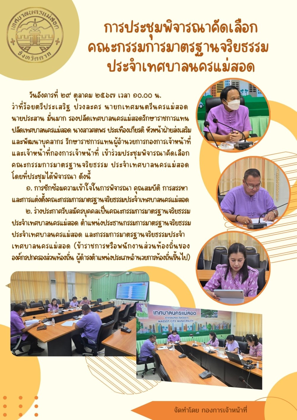 การประชุมพิจารณาคัดเลือกคณะกรรมการมาตรฐานจริยธรรมประจำเทศบาลนครแม่สอด