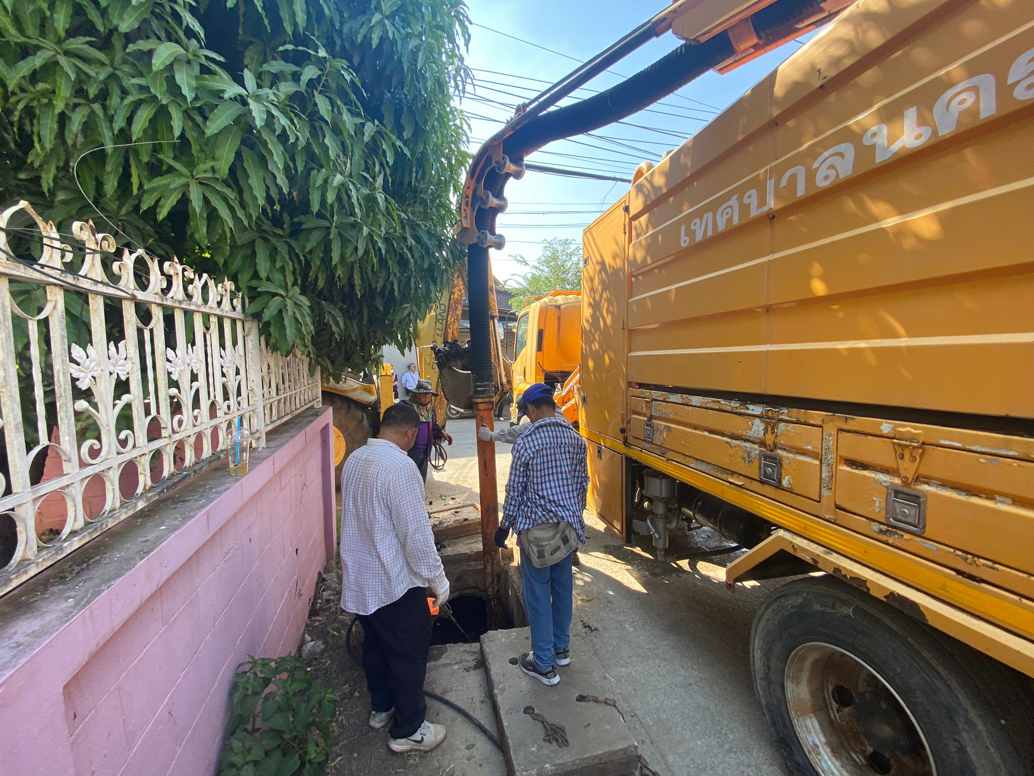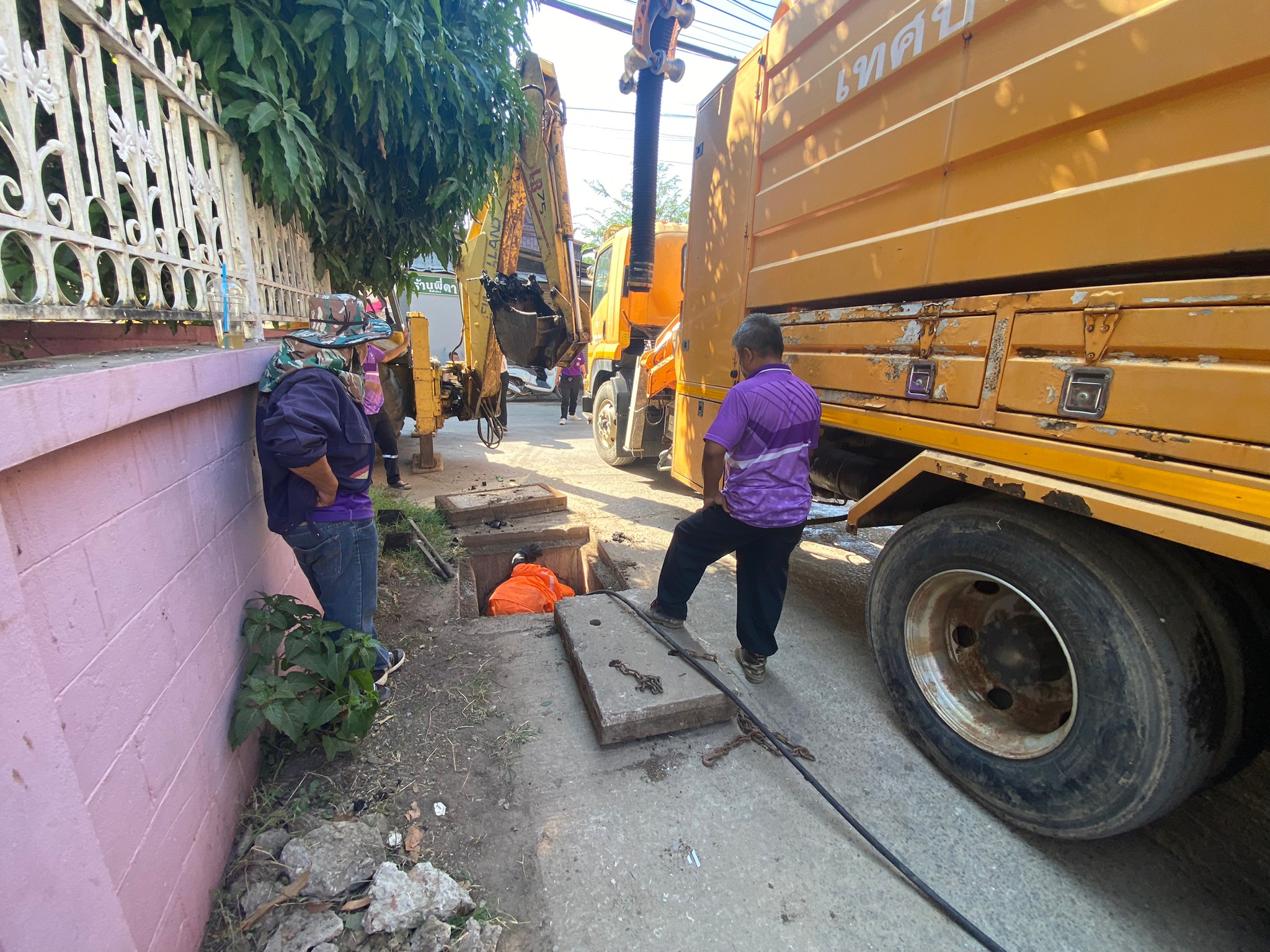 พนักงานภาคสนามกองช่างสุขาภิบาลได้ดำเนินการ ดูดโคลน บริเวณซอยมัสยิดมาดีนะฮ์