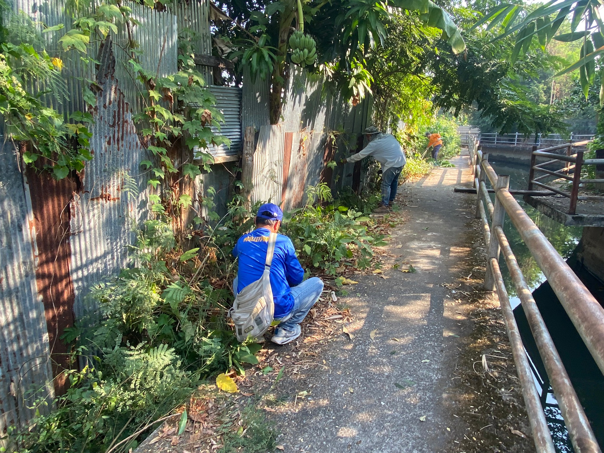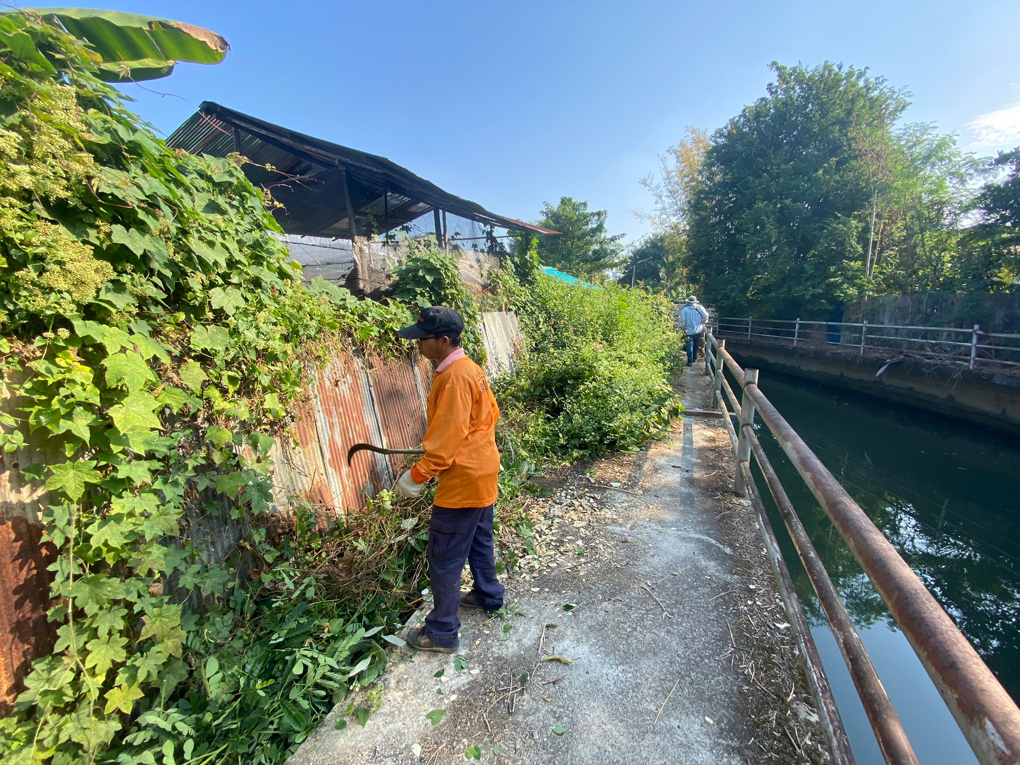 พนักงานภาคสนามกองช่างสุขาภิบาล ได้ดำเนินการตัดหญ้า/เก็บกวาดวัชพืช บริเวณแนวกำแพงกันดิน ชุมชนปู่แดง