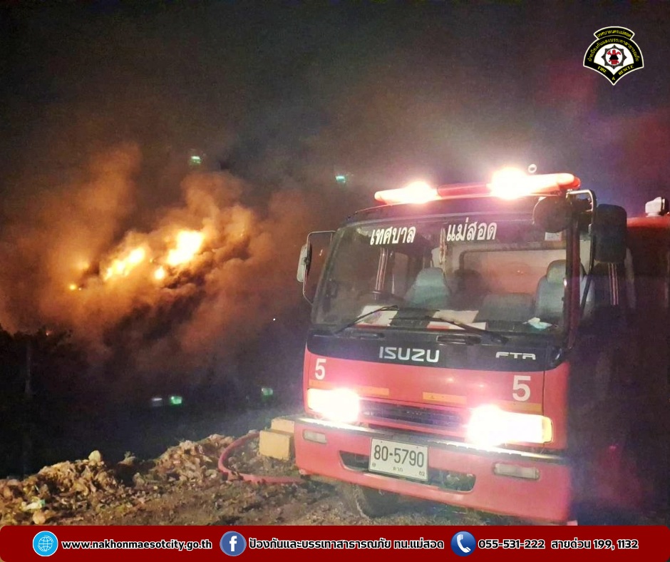 เมื่อวันจันทร์ที่ 6 มกราคม 2568 เวลาประมาณ 04.00 น. ได้เกิดเหตุเพลิงไหม้ บ่อขยะเทศบาลนครแม่สอด พื้นที่ตำบลแม่ปะ อำเภอแม่สอด จังหวัดตาก บริเวณโซนขยะชีวภาพ ซึ่งมีการกองสูงประมาณ 20 เมตร หรือเท่ากับอาคารสูงประมาณ 4-5 ชั้น