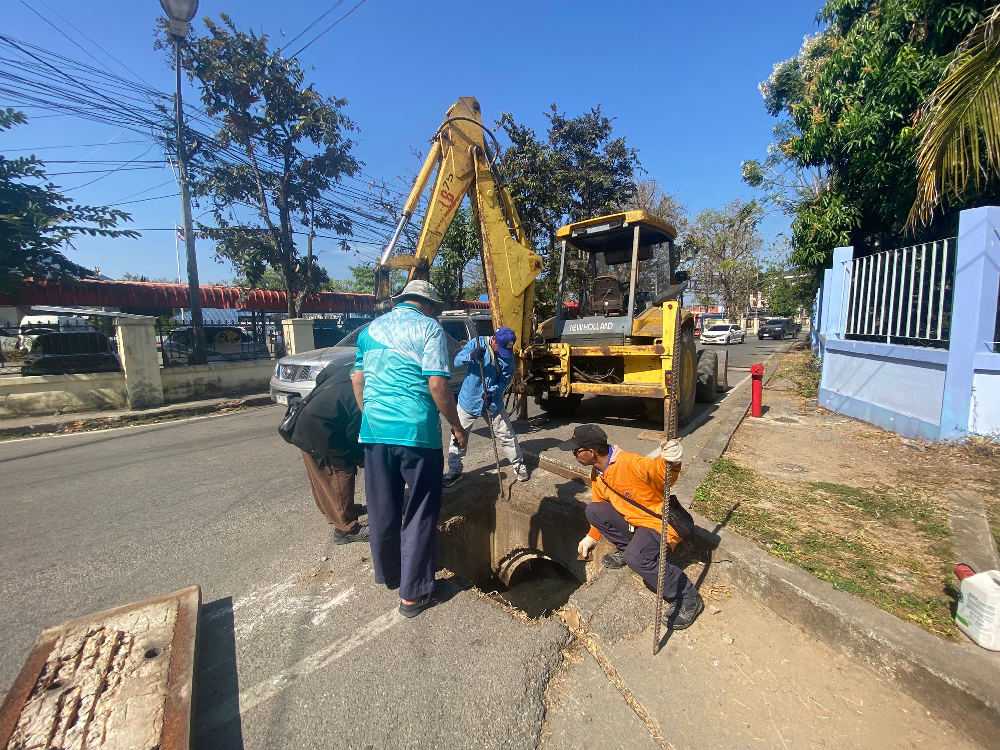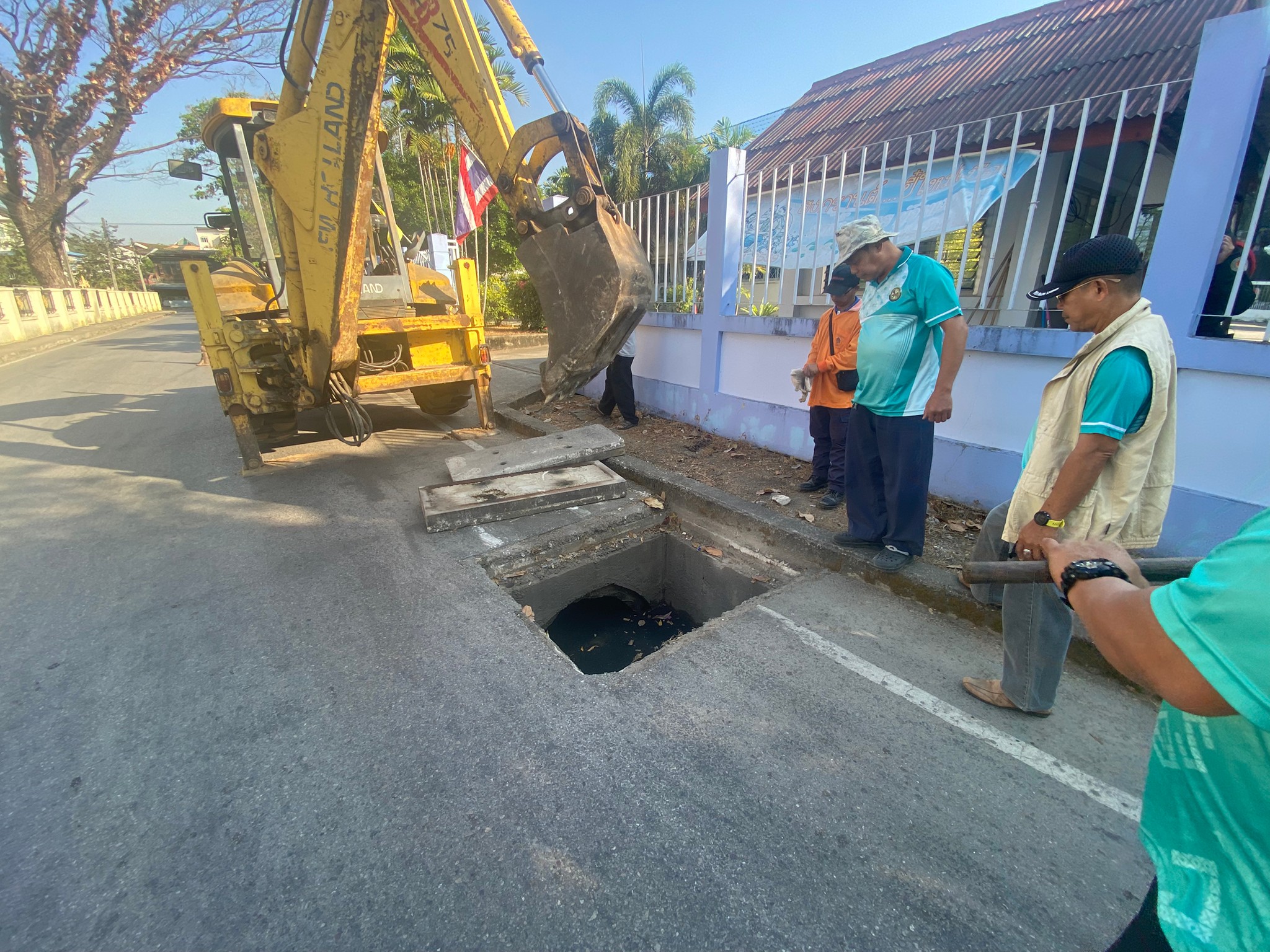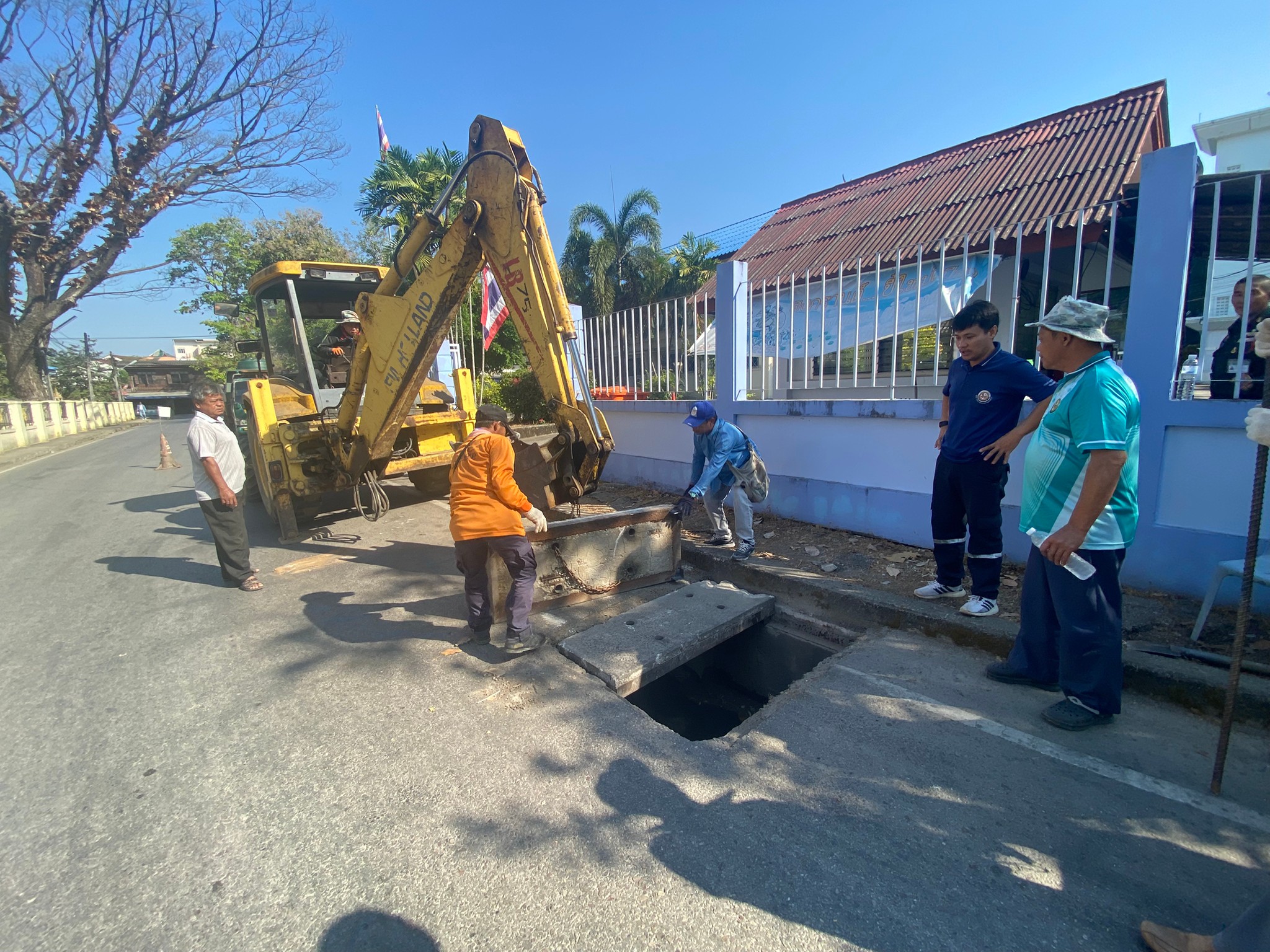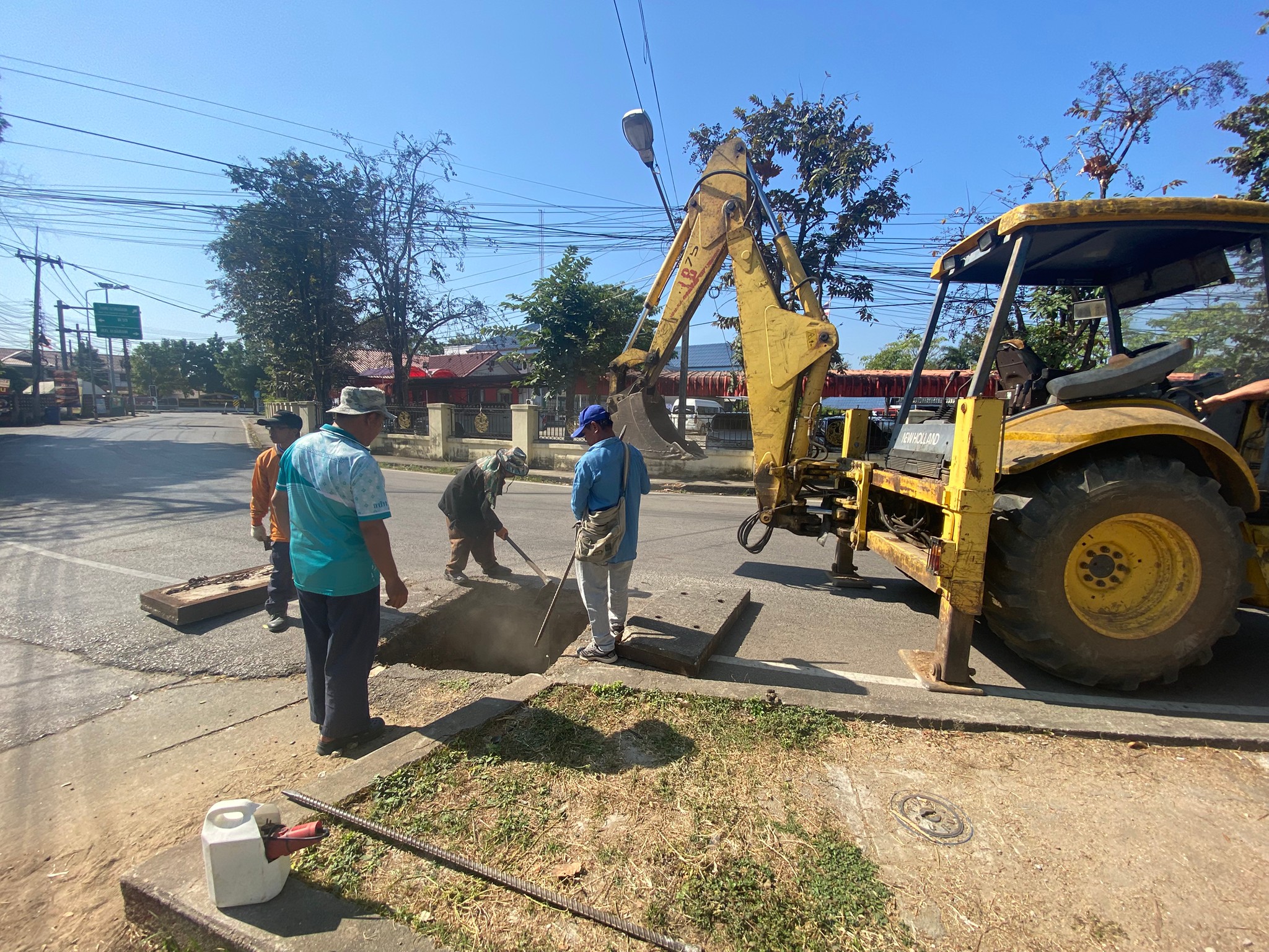 ซ่อมฝาท่อระบายน้ำ บริเวณหน้าสรรพากร ประตูทางเข้าที่ว่าการอำเภอ จำนวน 5 บ่อพัก