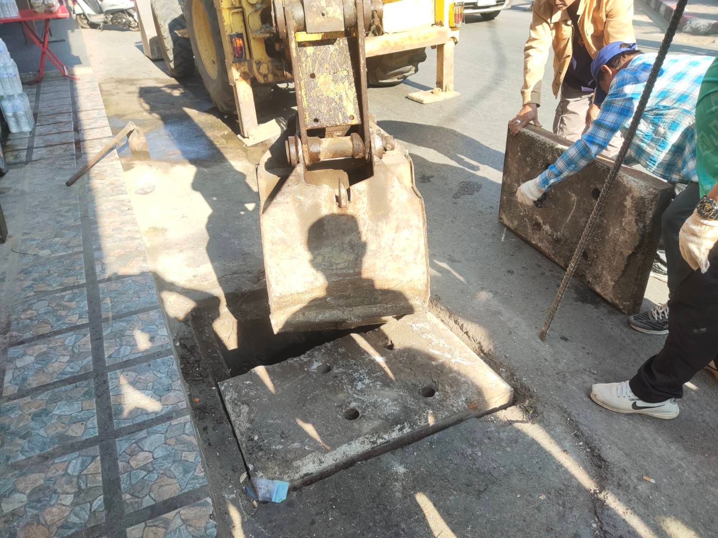 2. เปลี่ยนฝาท่อระบายน้ำบริเวณหน้าเซเว่น ร้านลูกชิ้น หน้าโรงพยาบาลแม่สอด จำนวน 1 ฝา