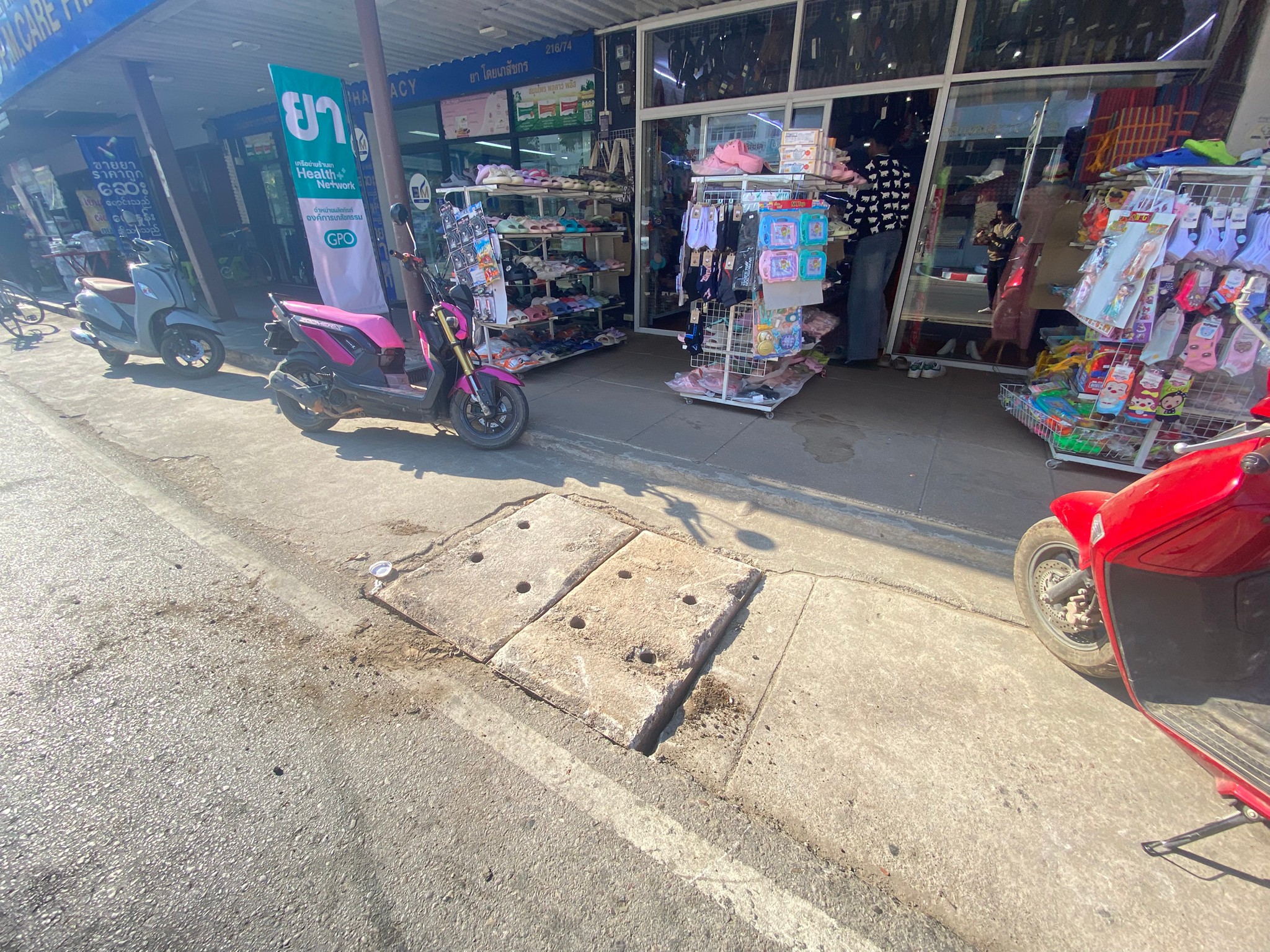 1. เปลี่ยนฝาท่อระบายน้ำบริเวณหน้าเซเว่น ร้านขายเสื้อผ้าและรองเท้า หน้าโรงพยาบาลแม่สอด จำนวน 1 ฝา