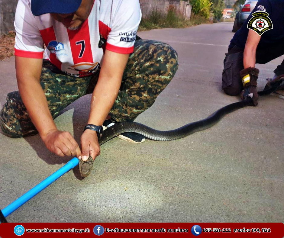 วันอาทิตย์ที่ 19 มกราคม 2568 เวลา 18.30 น. ฝ่ายป้องกันและบรรเทาสาธารณภัย เทศบาลนครแม่สอด ได้รับแจ้งจากประชาชนว่ามีสัตว์เลื้อยคลาน (งู) เข้าภายในบ้านเรือนประชาชน บริเวณหมู่บ้านหนองบัว เขตพื้นที่ตำบลแม่ปะ อำเภอแม่สอด จังหวัดตาก นายมนูศักดิ์ จันทร์โต นักป้องกันและบรรเทาสาธารณภัย รักษาราชการแทน หัวหน้าฝ่ายป้องกันและบรรทาสาธารณภัย จึงได้นำรถยนต์ตรวจการณ์ จำนวน 1 คัน เจ้าหน้าที่ พร้อมอุปกรณ์ ออกตรวจสอบ ณ บ้านประชาชน
