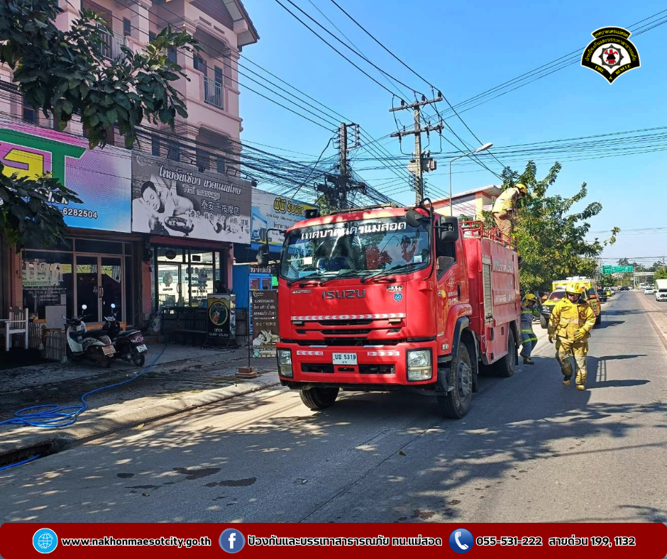 ดับเพลิงนครแม่สอด ออกระงับเหตุไฟฟ้าลัดวงจร บริเวณถนนราษฎร์อุทิศ ใกล้เคียงโรงพยาบาลแม่สอด-ราม