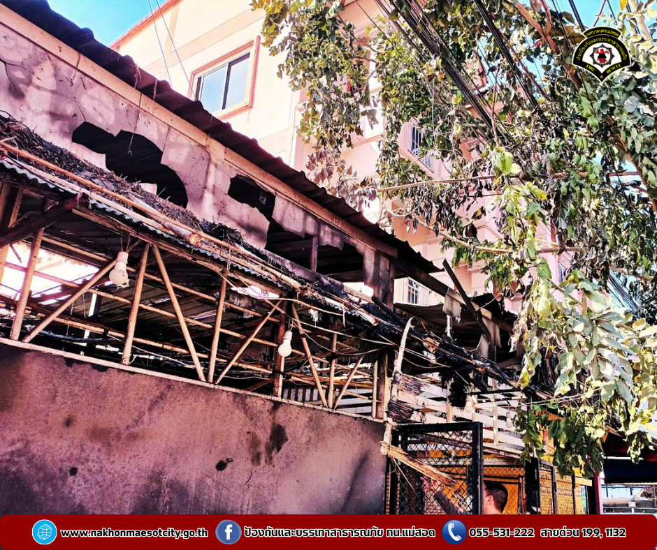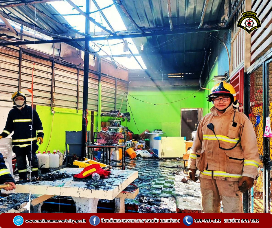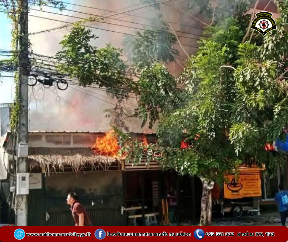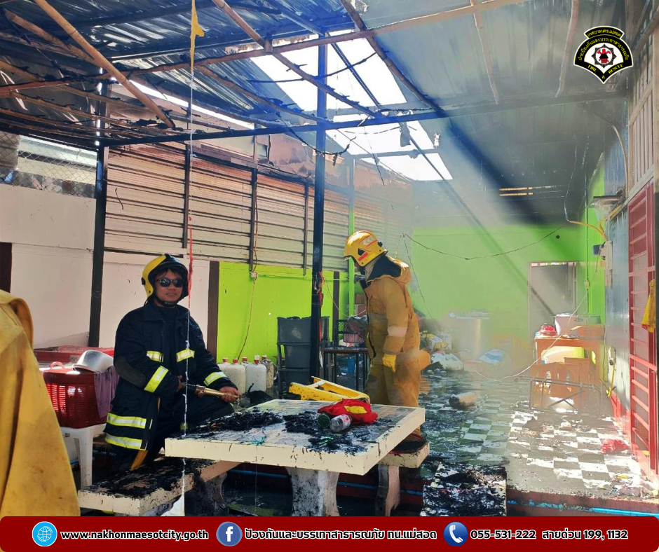 ฝ่ายป้องกันและบรรเทาสาธารณภัย เทศบาลนครแม่สอด ได้รับแจ้งจากประชาชนว่าเกิดเหตุเพลิงไหม้ร้านอาหาร ใกล้เคียงน้ำปิงปศุสัตว์ ถนนยอดข้าว อำเภอแม่สอด จังหวัดตาก