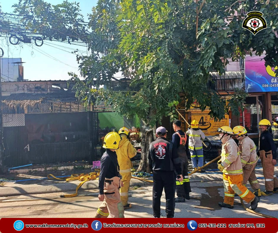 ดับเพลิงนครแม่สอด ออกระงับเหตุเพลิงไหม้ร้านอาหาร ใกล้เคียงน้ำปิงปศุสัตว์ ถนนยอดข้าว