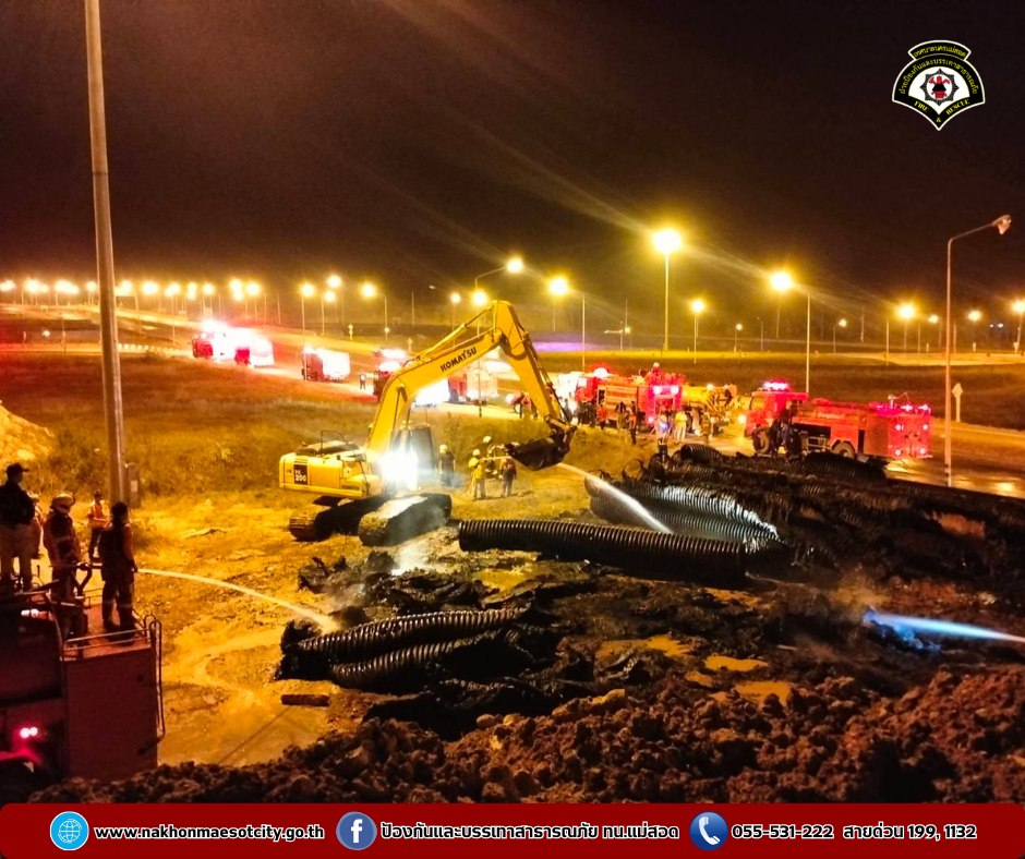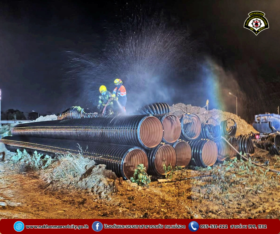 วันอังคารที่ 21 มกราคม 2568 เวลาประมาณ 18.20 น. ฝ่ายป้องกันและบรรเทาสาธารณภัย เทศบาลนครแม่สอด ได้รับแจ้งจากประชาชนว่าเกิดเหตุเพลิงไหม้ท่อ HDPE