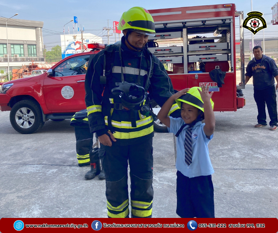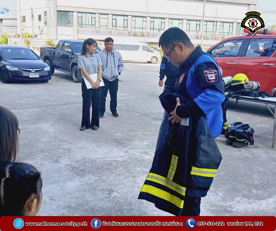 ฝ่ายป้องกันและบรรเทาสาธารณภัย เทศบาลนครแม่สอด เพื่อรับฟังการบรรยาย เรื่อง การใช้เครื่องมือ-อุปกรณ์ในการกู้ภัย และชุดดับเพลิงต่างๆ ให้นักเรียนได้เรียนรู้ได้ศึกษาดูงาน ณ ฝ่ายป้องกันและบรรเทาสาธารณภัย เทศบาลนครแม่สอด อำเภอแม่สอด จังหวัดตาก